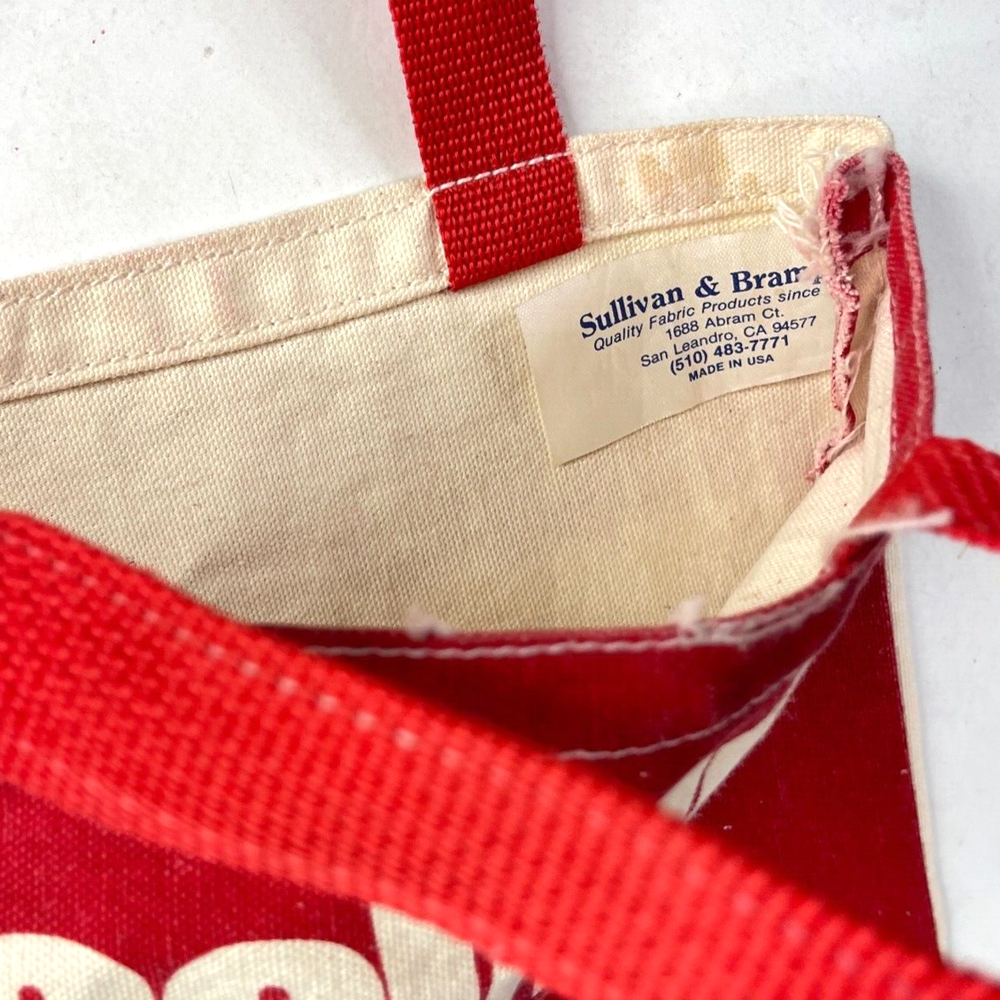 MacWeek Vintage Handled Tote Bag Computer/Tech Trade Show (MacWorld) Swag; circa 90s/Y2K Quantity = 1 (both sides are shown together in first pic) 2-sided graphics canvas; aprx 15"x12" made in USA flat capacity see pics for scale see our other listings for more vintage tech tote bags pre-owned condition with light stains and cosmetic wear; structurally sturdy