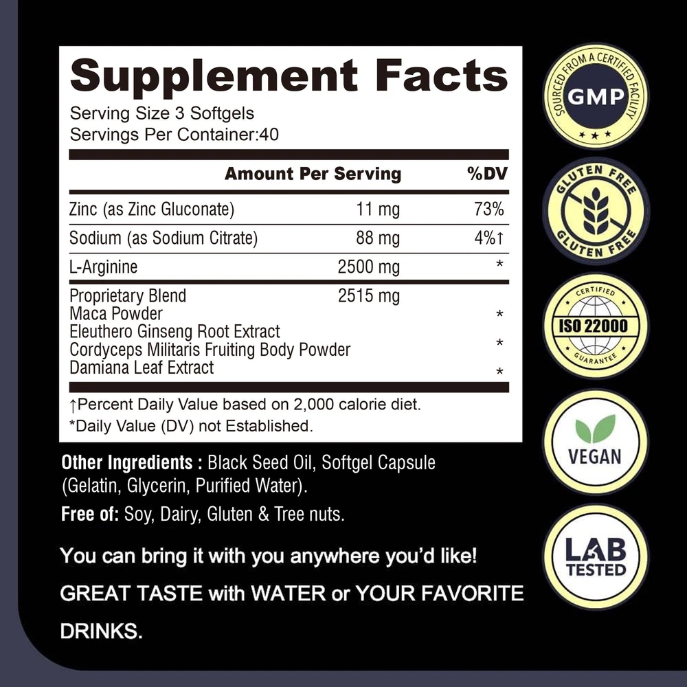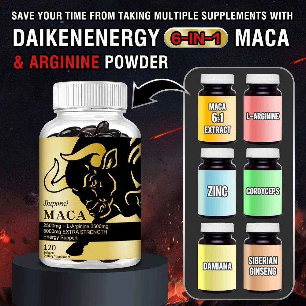 Effects: Energy & Endurance, Men's Health, Testosterone Booster Ingredients: L-Arginine,Maca Powder Directions: Take 2 capsules once daily after a meal. Shipping: Ships within 48 hours on working days. Shelf life: 2 years Description: RED MACA FOR MEN: Our Organic Red Maca Root Powder is the perfect supplement for you! Maca helps enhance male potency and fertility, supports the prostate, helps increase libido, and supports strength, endurance, and energy. It's a great natural way to start the day! MUSCLE BOOSTER, PRE-WORKOUT: Absolutely! Red Maca Root is the perfect choice for bodybuilders or anyone looking to gain weight and build muscle. It promotes skeletal muscle hypertrophy and differentiation, benefiting both men and women by stimulating the production of balanced levels of hormones: testosterone for men and estrogen for women. This makes Maca Root a unique supplement for muscle building and improving athletic performance. MACA ROOT, THE PERFECT ADAPTANT: Maca Root is a truly amazing adaptogen, it helps strengthen the body's natural defenses, allowing it to better cope with both physical and mental health. Maca Root helps the body regulate hormones more effectively, promoting balance and harmony. Our Organic Red Maca Root is ideal for anyone looking to improve their health. Document