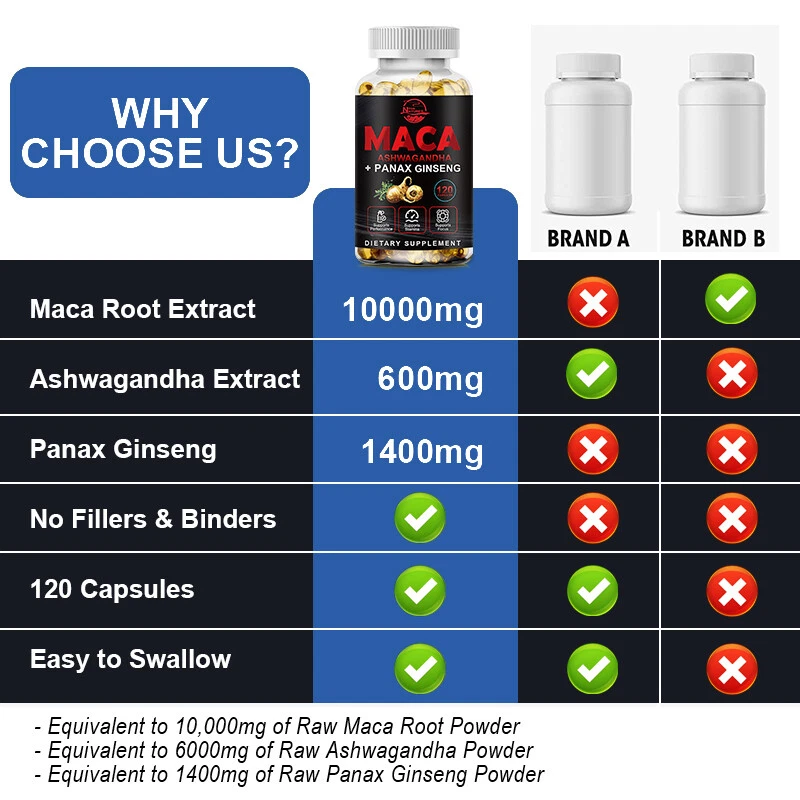 Maca Root,Ashwagandha,Panax Ginseng Extract Organic Male Enhancing 120 Capsules