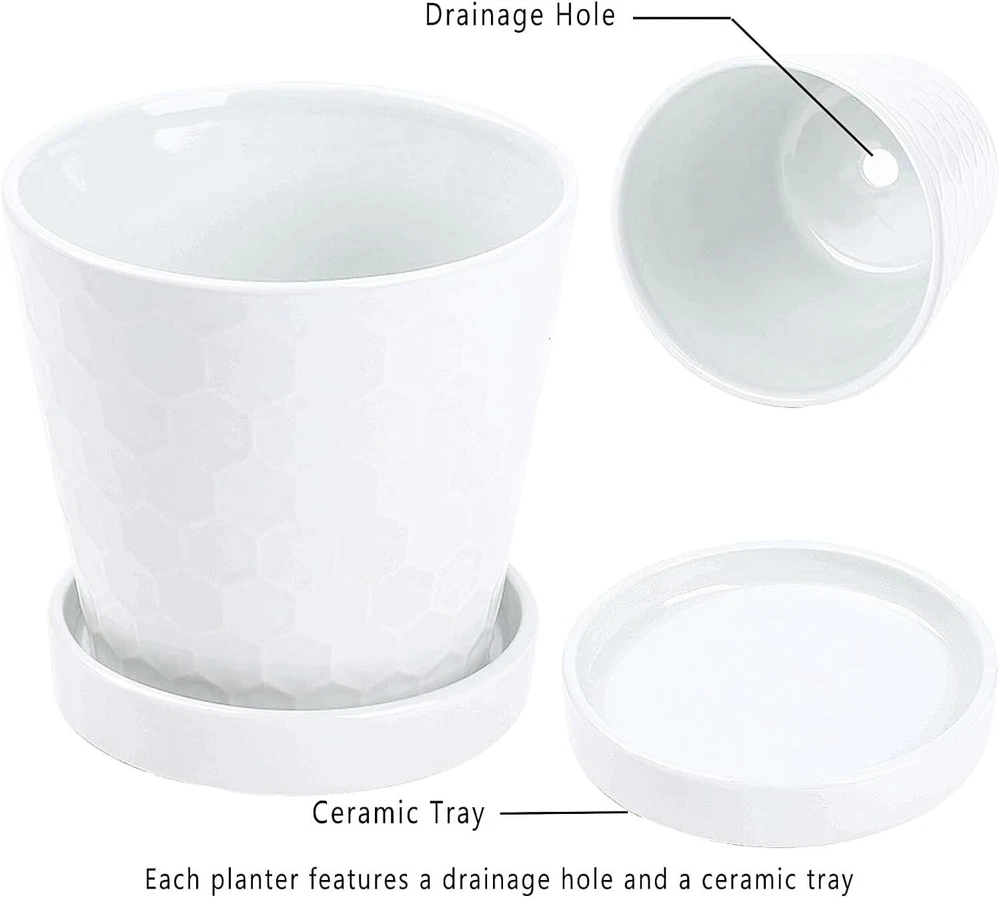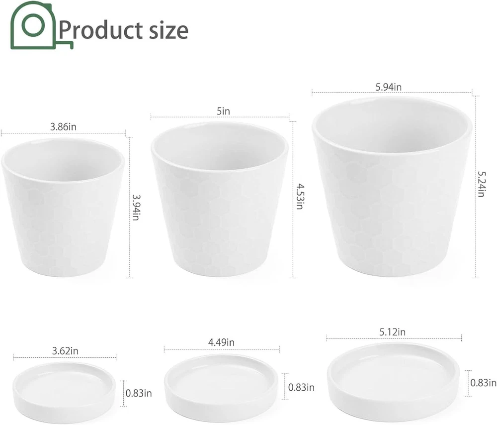Macetas De Ceramic Para Plantas Grandes Maceteros Exterior Interior Decoracion Diferentes dimensiones: grande: 6" de diámetro de apertura, 4.8" de diámetro inferior, 5.24" de altura; mediano: 5" de diámetro de apertura, 3.6" de diámetro inferior, 4.5" de altura; pequeño: 4" de diámetro de apertura, 2.8" de diámetro inferior, 4" de altura. Diseño moderno: las macetas para plantas de flores están diseñadas en forma de cono, lo que resalta una representación visual de cerámica de estilo minimalista moderno, con rayas breves que hacen que las macetas sean especiales, se adaptan a cualquier decoración del hogar u oficina. Alta calidad: estas macetas están creadas con cerámica resistente que está hecha de caolín, duradera, no se rompe fácilmente. Cada maceta de cerámica viene con un orificio de drenaje en la parte inferior que ayuda a minimizar la escorrentía de agua. Paquete sólido: envuelto con espuma gruesa, evita que se caiga y reduce la probabilidad de daños durante el transporte. Plantas no incluidas.