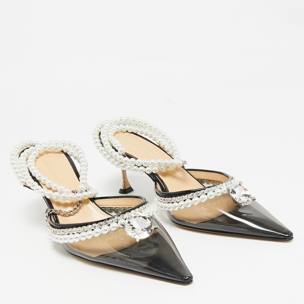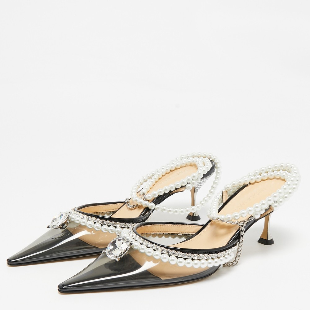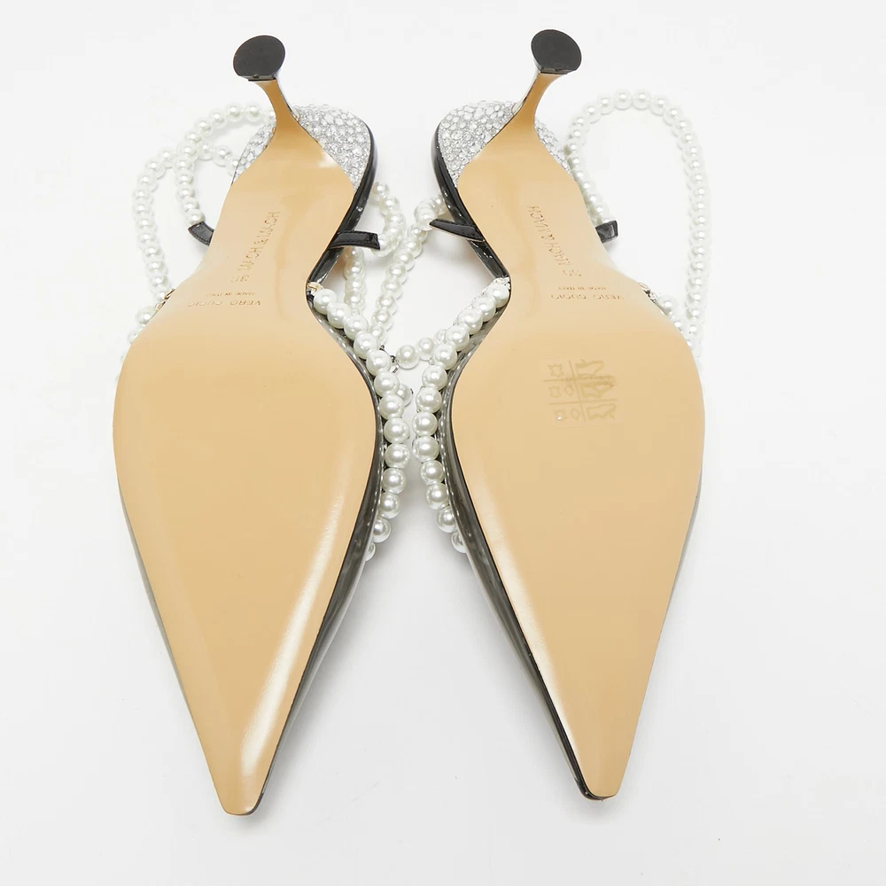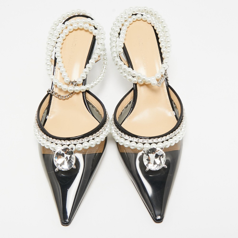 Make a statement with these Mach and Mach pumps for women. Impeccably crafted, these chic heels offer both fashion and comfort, elevating your look with each graceful step.Certified by The Luxury Closet - This item has gone through a detailed authentication process overseen by our experts. We offer a lifetime guarantee of authenticity on all our items. Import duties, taxes and charges are not included in the item price. These charges are the buyers responsibility. Please check with your country’s customs office to determine what these additional cost will be prior to buying. Our eBay Store About Us Contact Us Add to Favorite Sellers Mach & Mach Black PVC Diamond of Elizabeth Imitation Pearl Pumps Size 39 $1061.5 Make a statement with these Mach and Mach pumps for women. Impeccably crafted, these chic heels offer both fashion and comfort, elevating your look with each graceful step. Product Details Brand Color Black Dimensions Material Patent Leather, PVC Size 39 Outsole Width 8 cm Outsole Length 23 cm Heel Height 10.5 cm Includes The Luxury Closet Packaging Certified by The Luxury Closet This item has gone through a detailed authentication process overseen by our experts. We offer a lifetime guarantee of authenticity on all our items. How We Check The in-house team of experts at The Luxury Closet is highly trained to verify the authenticity and the condition of the luxury products. They ensure that only 100% authentic items are put on sale.The evaluation process is unique with its own mix of assessment criteria and differs according to the category. Each item is evaluated based on the following combination of hallmarks, hardware, stitching, symmetry, material, craftsmanship, stamping, codes, hologram stickers, and packaging. Our authenticators also check if the items have been modified or amended (e.g., aftermarket diamonds, replaced batteries, repaired bags, etc.) International Buyers Import duties, taxes and charges are not included in the item price. These charges are the buyers responsibility. Please check with your country’s customs office to determine what these additional cost will be prior to buying.