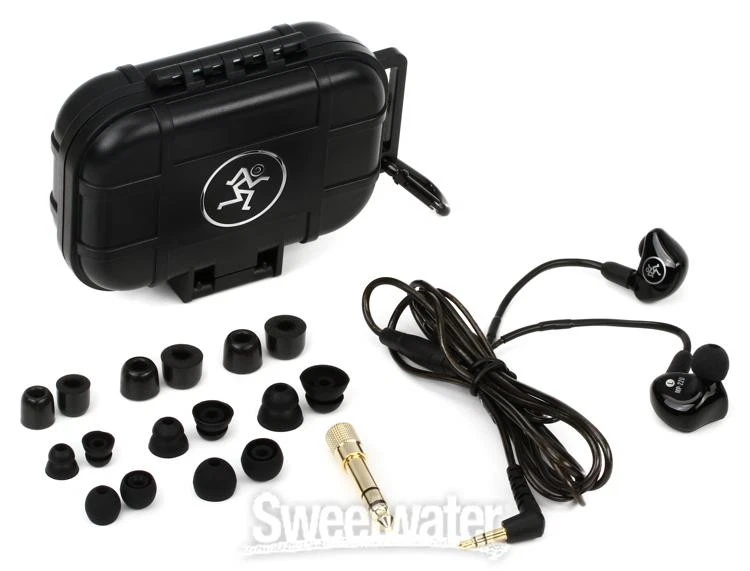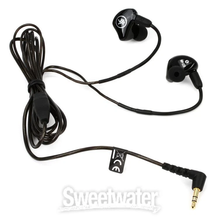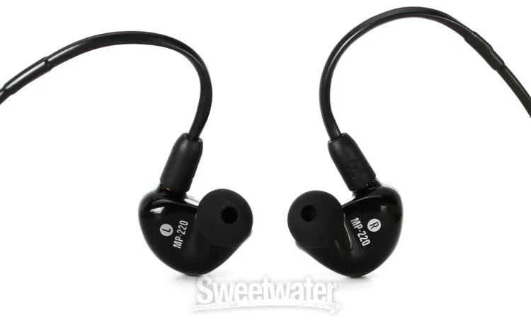 Comfortable In-ear Monitors from Mackie Bring your live or studio performance to the next level with the Mackie MP-220 in-ear monitors. These comfortable, ergonomically designed in-ear monitors give you enhanced sound isolation and a full-range frequency reproduction that benefits musicians, vocalists, and audio engineers alike, giving you pristine detail and clarity as you perform. With dual precision dynamic drivers in each earphone, these in-ears produce an incredibly balanced frequency response of 20Hz to 20kHz with a powerful bass response — features we love here at Sweetwater.Stellar design and features Because of their beautifully ergonomic design, the MP-220 earphones not only deliver stellar audio reproduction of your voice or instrument, but they also offer 40dB of noise isolation so that you can hear your performance without a lot of extraneous noise. In addition, MMCX connectors allow the shielded, braided cable to be detached for easy storage or replacement.Mackie MP-220 In-ear Monitors Sweetwater is an Authorized Mackie Dealer Genuine New Item Sweetwater's 2-year warranty Mackie MP-220 Dual Dynamic Driver Professional In-Ear Monitors In-ear Monitors with 40dB Noise Isolation Comfortable In-ear Monitors from Mackie Bring your live or studio performance to the next level with the Mackie MP-220 in-ear monitors. These comfortable, ergonomically designed in-ear monitors give you enhanced sound isolation and a full-range frequency reproduction that benefits musicians, vocalists, and audio engineers alike, giving you pristine detail and clarity as you perform. With dual precision dynamic drivers in each earphone, these in-ears produce an incredibly balanced frequency response of 20Hz to 20kHz with a powerful bass response — features we love here at Sweetwater. Stellar design and features Because of their beautifully ergonomic design, the MP-220 earphones not only deliver stellar audio reproduction of your voice or instrument, but they also offer 40dB of noise isolation so that you can hear your performance without a lot of extraneous noise. In addition, MMCX connectors allow the shielded, braided cable to be detached for easy storage or replacement. Mackie MP-220 In-ear Monitors Features: Ergonomically designed in-ear monitors provide enhanced sound isolation and full-range frequency reproduction Dual precision dynamic drivers produce balanced frequency response of 20Hz–20kHz with a powerful bass response Ergonomic design offers 40dB of noise isolation MMCX connectors allow the shielded, braided cable to be detached for easy storage or replacement 3 different types of eartips in 3 different sizes included Specification Detail Type Wired Connectivity 1/8" plug, 1/4" adapter Fit Style In-ear Drivers Dual Dynamic Noise Attenuation 40dB, Passive Noise Isolating Impedance 8 ohms Frequency Range 20Hz-20khz Sensitivity 104dB SPL @ 1mW Detachable Cable Yes Cable Length 59.1" Color Black Case/Bag Hard Case Weight 1.12 oz. RETURN INFORMATION Returns Not Accepted