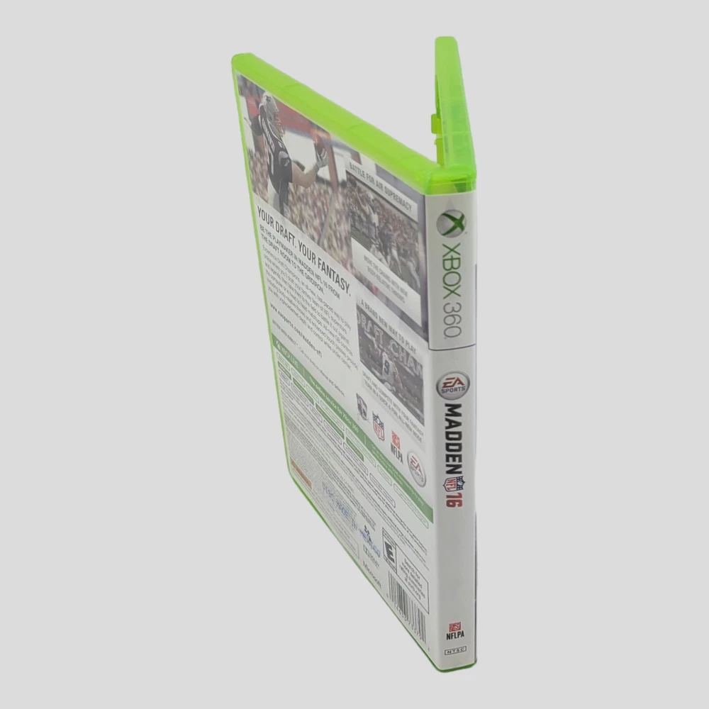 Video Game Series:Madden Nfl SeriesPublisher:EA SPORTSUPC:0014633733792Rating:E-EveryoneGame Name:Madden NFL 16Country/Region of Manufacture:UnknownRegion Code:NTSC-U/C (US/Canada)gtin13:0014633733792Platform:Microsoft Xbox 360Genre:SportsFeatures:Take control of receivers and battle against defensive backs with three new catching options Start off each drive with new commentary that highlights game trends Join friends for a fantasy draft in the new Draft Champions mode