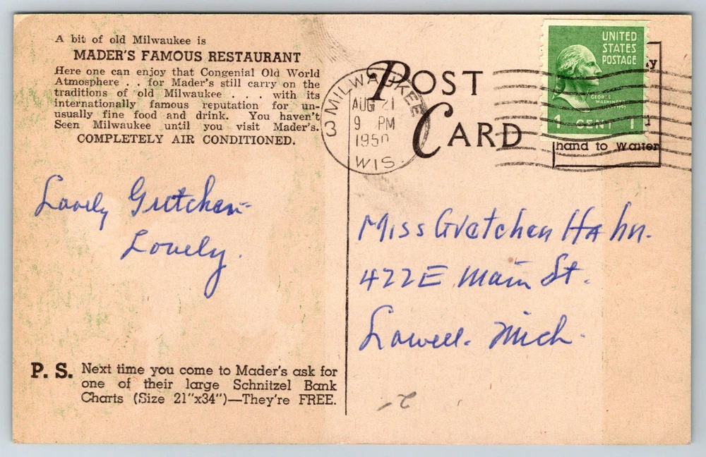 Maders Famous Restaurant Old World Milwaukee WI C1940s Postcard Y26