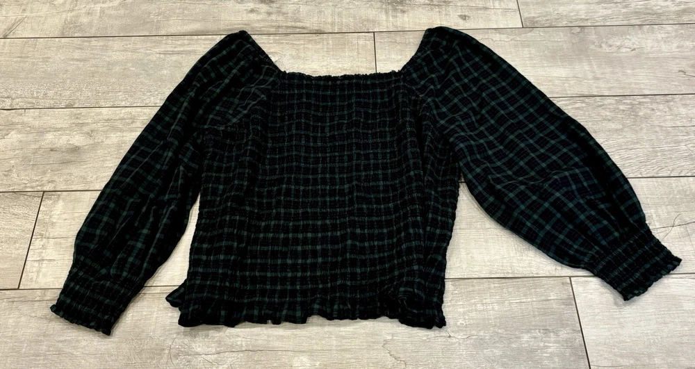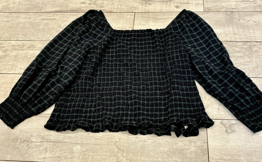 Madewell Lucie top in a blue/green plaid in a women's plus size 4x. Blouse is smocked front and back and has balloon sleeves with elastic cuffs. Material & care tags have been removed. Would be super cute with jeans and boot for that western/cowgirl look. Please see photos for measurements and condition. In excellent pre-owned condition-no rips, tears, holes or stains. Features: • Style Profile: Y2K, Beachy, Classic, Western, Cowgirl, Cottagcore, Country, Work, • Smocked front & back, Balloon sleeves with elastic cuffs, off shoulder, Comfy • Machine Washable • Chest: 46 in • Length: 27 in Measurements: - Previous washings may change the sizing written on the tag. - Please refer to the photos above for all measurements. - Please compare our measurements to that of one of your favorite garments. - Please note, item measurements are approximate . - Colors may differ slightly in shade from photos to actual item due variances caused by photography lighting and monitors. All items are bagged and sealed after being photographed, then stored in a smoke free environment to ensure the item is exactly the same as when photographed. We always carefully package and ship ASAP. Feel free to contact us with any questions. All items are washed per eBay standards and policies. We greatly appreciate your business! Please remember to leave positive feedback if you are happy with your purchase! Thanks for looking!