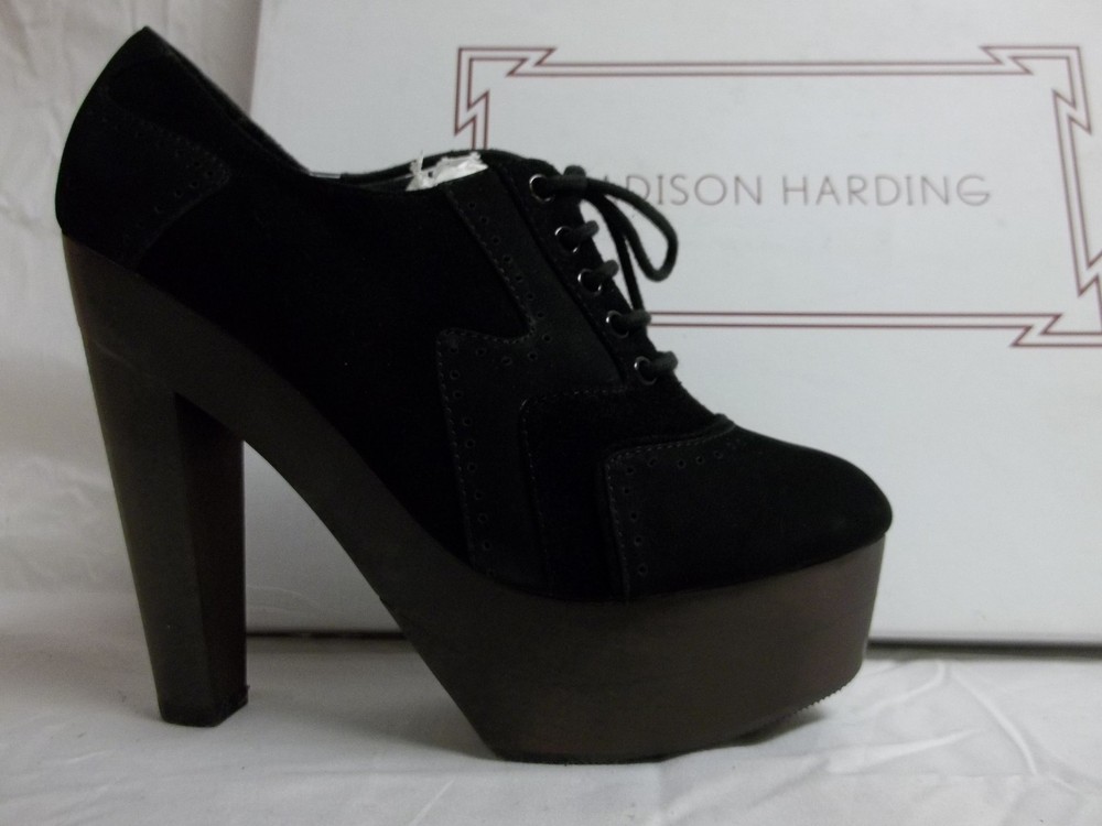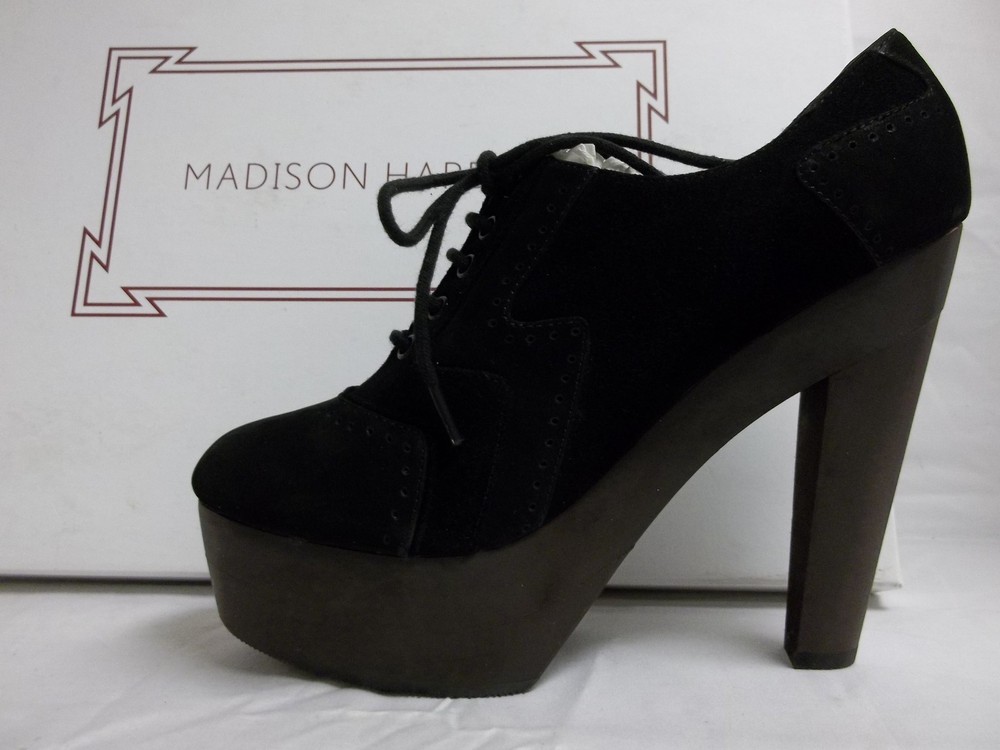 US Shoe Size:6.5SKU#:9568BUPC:Does not applyHeel Style:BlockStyle:Booties, Heelsgtin13:Does not applyBrand:Madison HardingDepartment:WomenPattern:SolidHeel Length:Approx. 5 InchesShoe Width:Medium (B, M)Type:HeelHeel Height:High (3 in. and Up)Color:BlackUpper Material:Leather