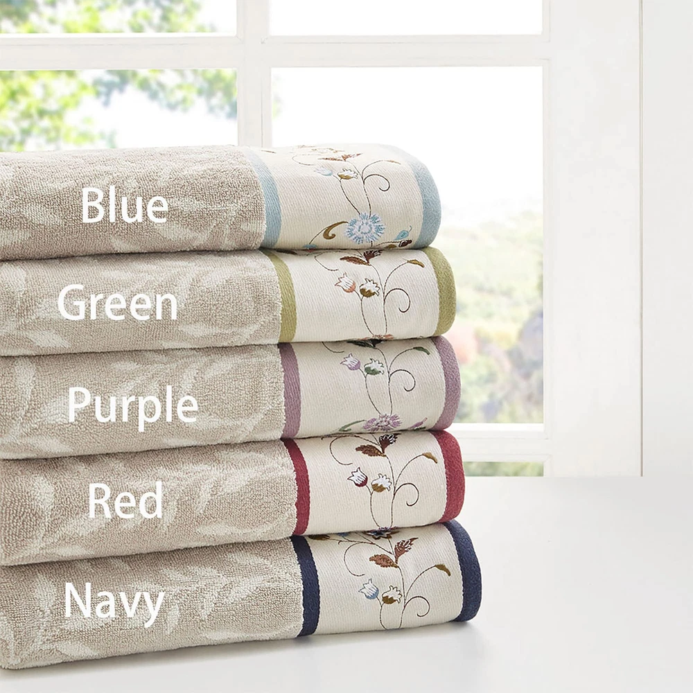 Serene 100% Cotton Bath Towel Set Luxurious Floral Decorative Towels for Bathroom Embroidered Cotton Jacquard Design Soft Highly Absorbent for Shower 600 GSM, Multi-Sizes, Red 6 Piece 100% Cotton jacquard Water absorbant Jacquard leaf motif Floral embroidered hem 550gsm cotton terry 2 Bath Towels:27"W x 52"L (2) 2 Hand Towels:16"W x 28"L (2) 2 Fingertip Towels:12"W x 18"L (2) Machine Washable Shipping We offer FREE shipping on all orders! We ship within Three business days of payment, usually sooner. We use a selection of shipping services such as UPS, FedEx, USPS etc. We only ship to the lower 48 states, no APO/FPO addresses or PO Boxes allowed. Local pickups and combined shipping options are not provided at this time. Return You can return a product for up to 30 days from the date you purchased it. Any product you return must be in the same condition you received it and in the original packaging. Please keep the receipt. Payment We accept payment by any of the following methods: PayPal Please pay as soon as possible after winning an auction, as that will allow us to post your item to you sooner! Feedback Customer satisfaction is very important to us. If you have any problem with your order, please contact us and we will do our best to make you satisfied. Contact Us If you have any queries, please contact us via ebay. We usually respond within 24 hours on weekdays. Please visit our eBay store to check out other items for sale! Thank you for shopping at our store.