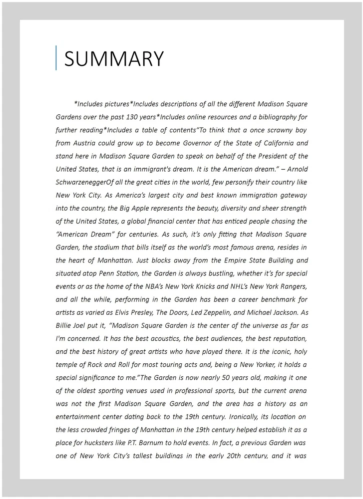 Madison Square Garden : The History of New York City's Most Famous Arena, Paperback by Charles River (COR), ISBN 1542752892, ISBN-13 9781542752893, Brand New, Free shipping in the US *Includes pictures*Includes descriptions of all the different Madison Square Gardens over the past 130 years*Includes online resources and a bibliography for further reading*Includes a table of contents“To think that a once scrawny boy from Austria could grow up to become Governor of the State of California and stand here in Madison Square Garden to speak on behalf of the President of the United States, that is an immigrant's dream. It is the American dream.” – Arnold SchwarzeneggerOf all the great cities in the world, few personify their country like New York City. As America’s largest city and best known immigration gateway into the country, the Big Apple represents the beauty, diversity and sheer strength of the United States, a global financial center that has enticed people chasing the “American Dream” for centuries. As such, it’s only fitting that Madison Square Garden, the stadium that bills itself as the world’s most famous arena, resides in the heart of Manhattan. Just blocks away from the Empire State Building and situated atop Penn Station, the Garden is always bustling, whether it’s for special events or as the home of the NBA’s New York Knicks and NHL’s New York Rangers, and all the while, performing in the Garden has been a career benchmark for artists as varied as Elvis Presley, The Doors, Led Zeppelin, and Michael Jackson. As Billie Joel put it, “Madison Square Garden is the center of the universe as far as I'm concerned. It has the best acoustics, the best audiences, the best reputation, and the best history of great artists who have played there. It is the iconic, holy temple of Rock and Roll for most touring acts and, being a New Yorker, it holds a special significance to me.”The Garden is now nearly 50 years old, making it one of the oldest sporting venues used in professional sports, but the current arena was not the first Madison Square Garden, and the area has a history as an entertainment center dating back to the 19th century. Ironically, its location on the less crowded fringes of Manhattan in the 19th century helped establish it as a place for hucksters like . Barnum to hold events. In fact, a previous Garden was one of New York City’s tallest buildings in the early 20th century, and it was bankrolled by business titans like . Morgan and Andrew Carnegie. Madison Square Garden: The History of New York City’s Most Famous Arena chronicles the history of one of New York’s most iconic landmarks. Along with pictures of important people, places, and events, you will learn about MSG like never before, in no time at all.