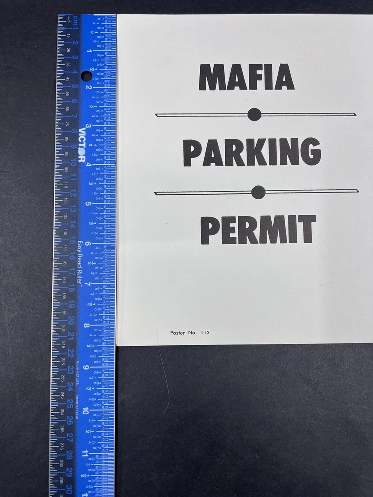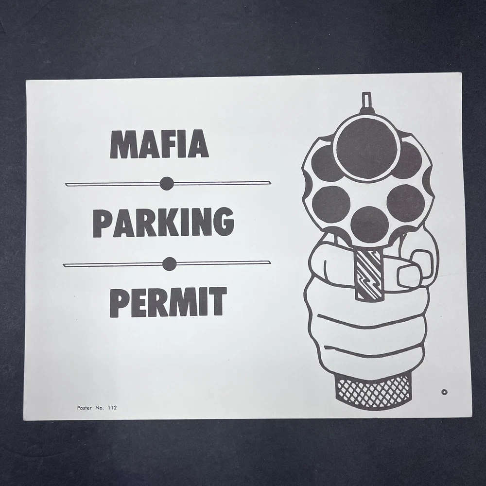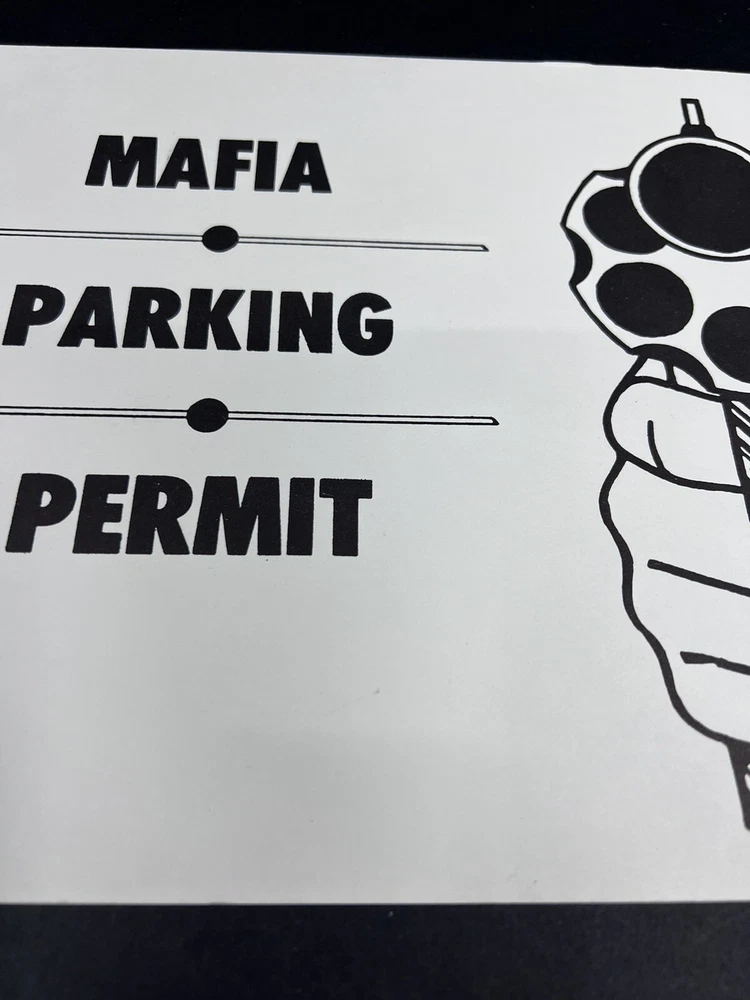 Mafia Parking Permit Poster Board Sign 8.5” X 11”.