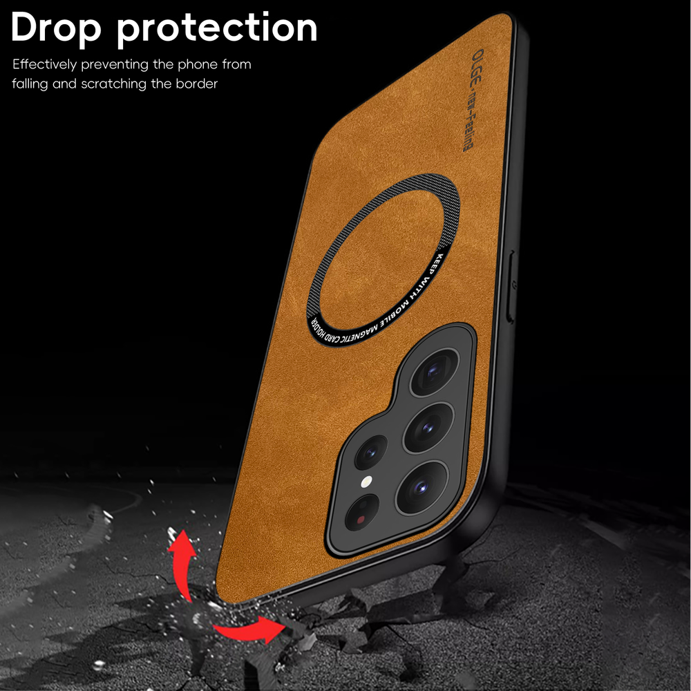 For Samsung Galaxy S24 FE S23 Ultra S22+ Mag Safe Magnetic Leather Case Cover POWERFUL MAGNETIC BACK: Built-in powerful magnet works perfectly with all magnetic accessories such as wallets, mobile power and wireless charging. MILITARY GRADE COMPREHENSIVE PROTECTION: Reinforced corners, screen and camera protection with high impact shockproof TPU. Provides a long-lasting layer of protection to shield your expensive device from dust, scratches and drops. PRECISION CUTTINGS: Customized precision cutouts allow easy access to all buttons, camera, speakers and connectors without removing the case.
