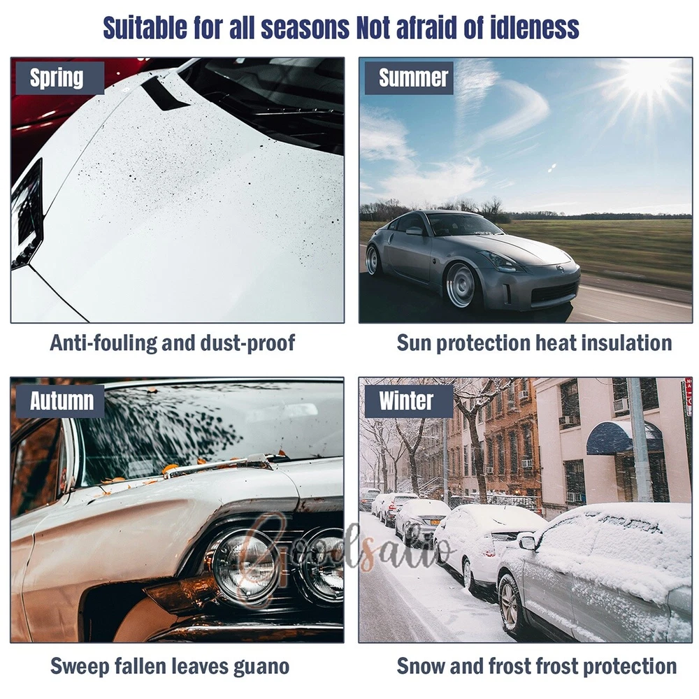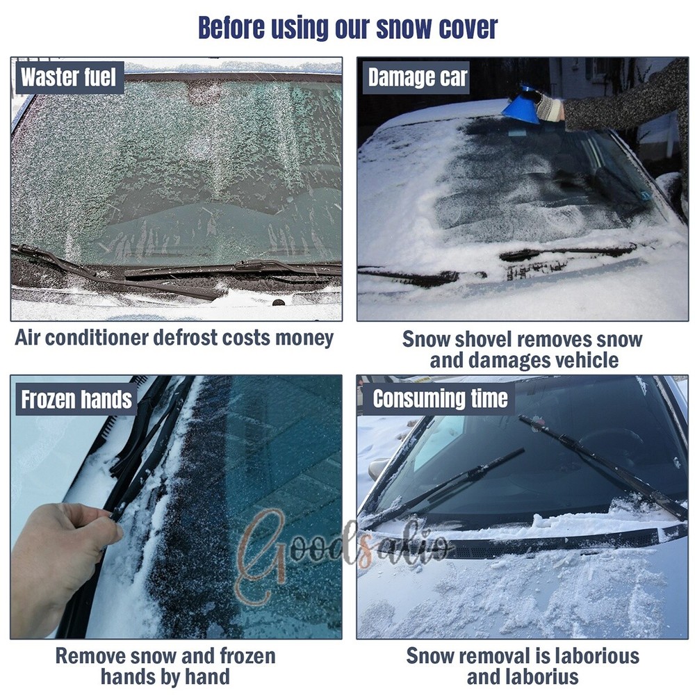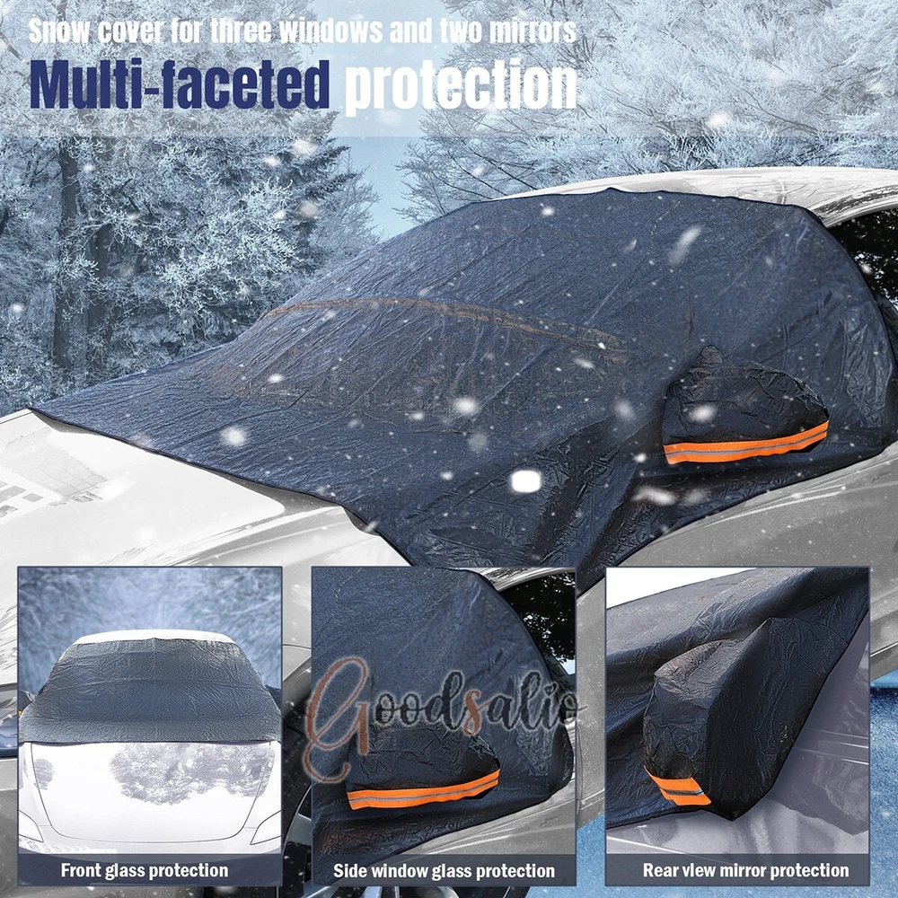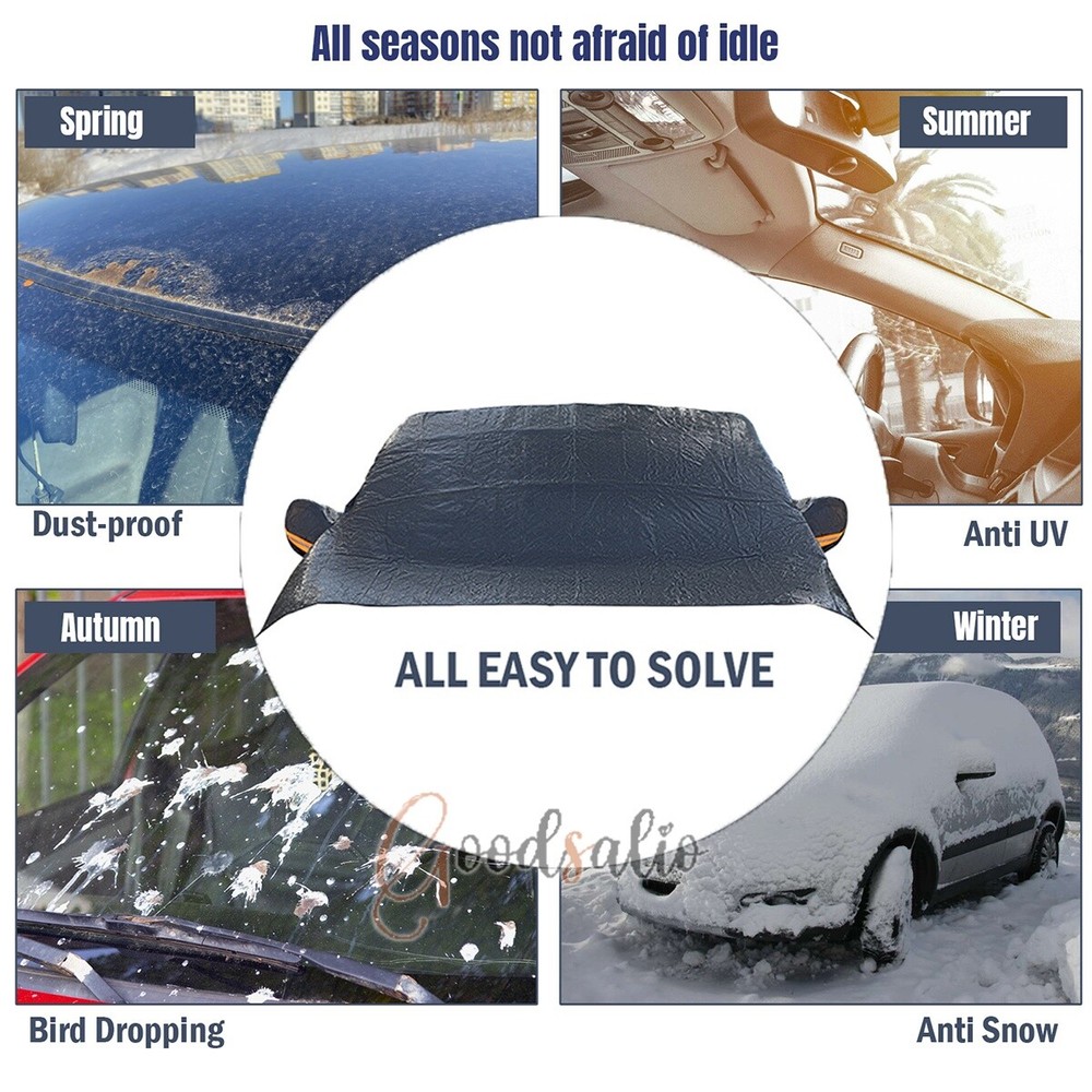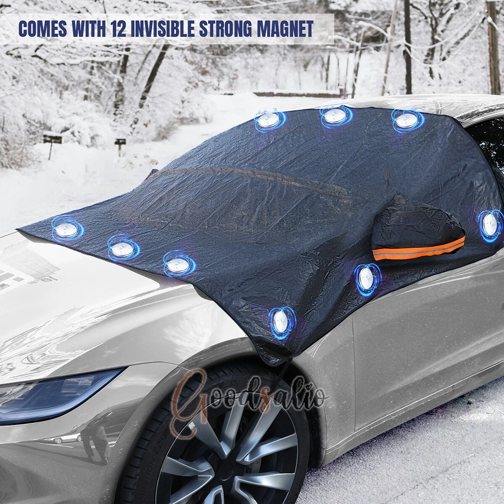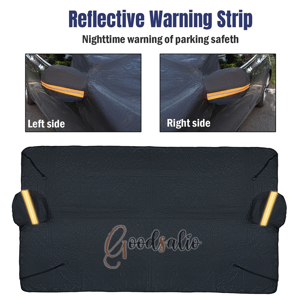 Magnetic Car Windshield Snow Cover Winter Ice Frost Guard Sun Sunshade Protector ★SPECIAL TIPS: √ Ship within 24 hours Via USPS from NJ ,USA √ 100% New & Excellent Quality √ Professional Customer Service √ Strictly QC, Each set was fully tested before shipping √ Offer delivery with Tracking Number If not 100% satisfied with our products, no-questions asked, we offer 30-day free return & money back. Product Feature 1.Aluminum Film Material: The Snow Cover is made of high quality aluminum film, which is rain and snow-proof, scratch-proof, does not hurt the car paint, and tear-resistant. 2.Multi-Directional Protection: The Snow and Anti-Freeze Body Cover can protect the front glass, side window glass, rearview mirror, multi-directional care of your car. 3.Multi-Layer Function: The Dust and Waterproof Protective Cloth has a 3-layer functional design, the surface layer is responsible for keeping out the cold, the middle layer is responsible for storing heat, and the inner layer is responsible for warming back up. 4.Invisible Magnetic Design: The Snow Cover comes with 12 invisible strong magnets, which can enhance the adhesion with the surface of the car, strong windproof without harming the car paint at the same time. 5.Reflective Warning: The Snow and Anti-Freeze Body Cover is made of enlarged earmuffs and has a reflective warning on it, which enhances the safety of the vehicle when it is parked. Product Parameter Material: Aluminum Film + Flocking Color: Black Size: 188x126cm/74.02x49.61in Products Include 1x Snow Cover