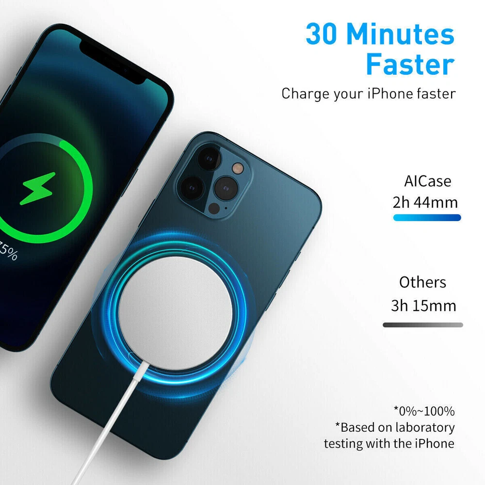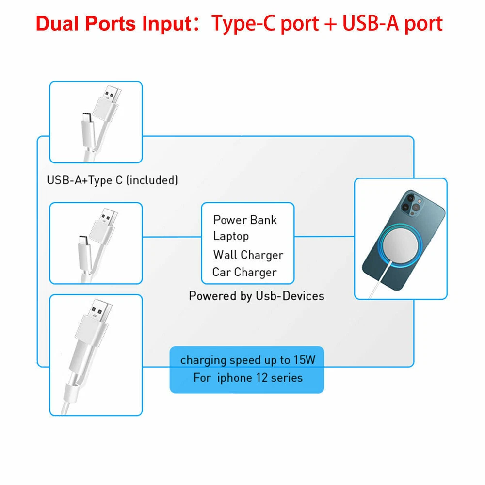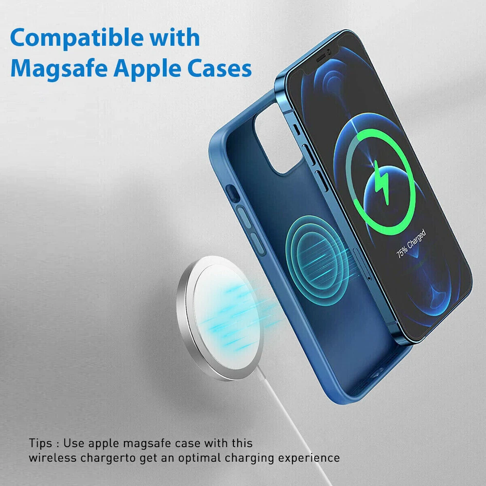 Magnetic Charger Magsafe Wireless Charger For iPhone 15/14/13/12 pro max/11/XS/XR/8 Magnetic Wireless Charger for iPhone 13 14 15 and 12 Series Mini Wireless Charger Magnetic Fast Charging Magnetic Wireless Charger, Qi, 15W, Compatible with iPhone 13 14 15 and iPhone 12 (all series) What's in the box: Wireless magnetic charger with cable Compatible with: iPhone 13 14 15, iPhone 13 14 15 Pro, iPhone 13 14 15 Pro Max, iPhone 13 Mini iPhone 12, iPhone 12 Pro, iPhone 12 Pro Max, iPhone 12 Mini. ------------------------------------------------------------------------------------------ 20W PD AC adapter for iPhone 13 14 15 and 12 Series Compatibility: iPhone 13 14 15 and 12 series Color: White Connector : Type-C, for iPhone 13 14 15 and 12 series This Fast Charger equipped with 20W PD 3.0 USB Type C power delivery wall plug, Quick-Charge USB C port provides max output power, charging your iPhone up to 50% in just 30 minutes, saving you over 1.5hrs. Intelligent chip automatically detects and delivers the optimal charging power for connected devices, guaranteeing fast charging while protecting battery life. 【Efficient Magnetic Alignment】Powerful magnetic absorption, perfectly aligned with your phone. Whether you are working, playing games, watching videos, listening to music, or chatting with your family and friends, free your hands and make charging easier. 【Easy charging at night】In the dark of the bedroom, you do not worry about how difficult to find the charging port. Even put down your iPhone 12/13 on the wireless charging pad casually , it will be automatically aligned charging. magnetic wireless charger will give you a more convenient and more thoughtful using experience. 【Metal & Portable Design】The high-quality metal material exhibits a unique luster, avoids scratches or fingerprints, not only keep perfect appearance, but also more durable. Only 0.23 inch thin, just like the smallest lightest wireless mag safe charger with the 3ft long cable. Free up more space, it can be put into backpacks, pockets or bags. Learn More: · Your charger is designed for faster and most efficient charging with iPhone 13 models, and iPhone 12 models. · Don't place credit cards, security badges, passports, or key fobs between your iPhone and the charger, because this might damage magnetic strips or RFID chips in those items. · If you have a case that holds any of these sensitive items, remove them before charging or make sure that they aren’t between the back of your device and the charger. · If your iPhone is connected to both a wireless charger and power via a Lightning port, your iPhone will charge via the Lightning connector. · As with other wireless chargers, your iPhone might get slightly warmer while charging. To extend the lifespan of your battery, if the battery gets too warm, software might limit charging above 80 percent. · If you keep your iPhone in a leather case while charging, the case might show circular imprints from compression of the leather. This is normal, but if you’re concerned about this, we suggest using a non-leather case.