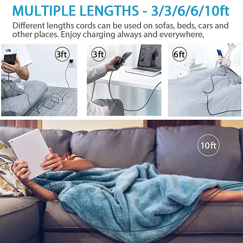 Terasako Magnetic Charging Cable 5-Pack (3/3/6/6/10FT) - 540° Rotating Magnetic Phone Charger Cable with LED Light - 90° Angle Connector, Nylon-Braided Cords (Black) CHARGING MADE MORE CONVENIENT - Our magnetic charging cable allows for 360° rotation. This eliminates the trouble of turning cable connectors for a quick, one-handed charging operation. UNDISRUPTED CHARGING - The magnets in our charging kit securely stick to each other to create a solid attachment that won't snap off easily; hence, resulting in a more stable connection. COMPATIBLE WITH MOST DEVICES - Our phone charger cable comes with a variety of connectors including micro-USB, type-C, and i-product tips. It's basically the only charger you'll ever need! MULTIPLE LENGTHS - 3/3/6/6/10ft - Different lengths cords can be used on sofas, beds, cars and other places. Enjoy charging always and everywhere, without worrying about taking the cable anywhere. SUPER VALUE PACK - Includes 5 magnetic charging cables, 4 magnetic micro-USB tips, 4 magnetic type-C tips, and 4 magnetic i-product tips. Shipping We offer FREE shipping on all orders! We ship within Three business days of payment, usually sooner. We use a selection of shipping services such as UPS, FedEx, USPS etc. We only ship to the lower 48 states, no APO/FPO addresses or PO Boxes allowed. Local pickups and combined shipping options are not provided at this time. Return You can return a product for up to 30 days from the date you purchased it. Any product you return must be in the same condition you received it and in the original packaging. Please keep the receipt. Payment We accept payment by any of the following methods: PayPal Please pay as soon as possible after winning an auction, as that will allow us to post your item to you sooner! Feedback Customer satisfaction is very important to us. If you have any problem with your order, please contact us and we will do our best to make you satisfied. Contact Us If you have any queries, please contact us via ebay. We usually respond within 24 hours on weekdays. Please visit our eBay store to check out other items for sale! Thank you for shopping at our store.
