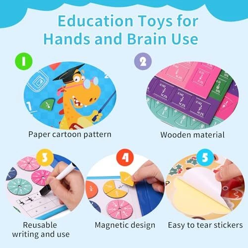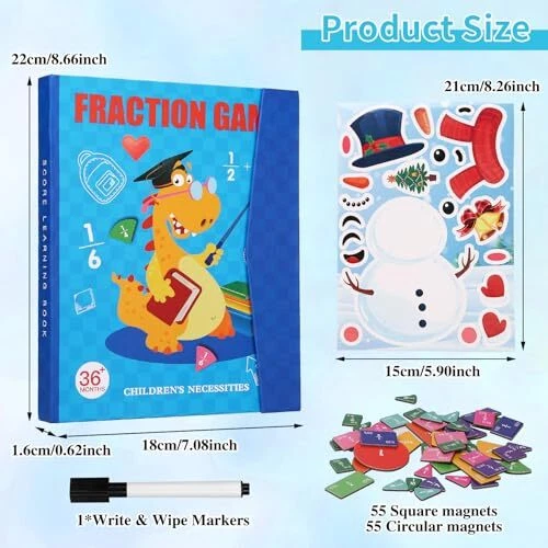 Return Policy Fast Delivery Trusted seller Magnetic Fraction Educational Puzzle - New Montessori Magnetic Book Fraction Tiles and Fraction Circles for Children,Magnetic Math Manipulatives Education Materials for Elementary School Product Description Magnetic Fraction Tiles Set:You will get 110 blocks of rectangular magnetic fractions and circular magnetic fractions,1 pen,6 Christmas Sticker Sheets.By manually combining and decomposing fractions,help students understand the relationship and significance of numerator and denominator. Magnetic Fraction Tiles & Fraction Circles:Bright colors and contrasting numbers make the learning process simple,interesting, and more intuitive,helping students understand the relationship and meaning of denominators and numerators by manually combining and decomposing fractions. Educational and Fun:The perfect tool to immerse students in interactive learning and help them master fractions easily.By fitting fraction tiles into shaded areas and writing corresponding equations,students can develop a practical and intuitive understanding of fractions. Multiple Applications:Our magnetic fraction strip puzzle blocks with magnet attached to the back can be attached to the whiteboard, refrigerator or any metal surface, book clip magnetic closure design for easier storage. Great Toys Idea For Boys And Girls:Suitable for different learning scenarios such as family tutoring and classroom teaching.It can also make a meaningful gift for your friends and family. Shipping Returns Payment Shipping Shipping is FREE to all addresses other than APO/PO boxes in the lower 48 states. All our stock ships from US-based warehouses. Shipped via USPS or UPS (depending on location and package weight) Unless stated otherwise, all orders will ship within 24-72 hours of your payment being processed. Check our feedback to see the great reviews of FAST shipping we offer. Returns Seller does not accept returns Payment We currently accept payment via eBay managed payments only. Once payment is cleared, we will dispatch your shipment within 1-3 business days. Please refer to the "Shipping" tab for more information regarding shipping speed to your destination.