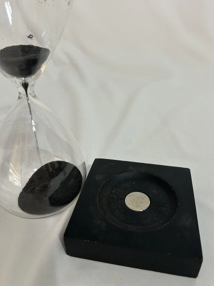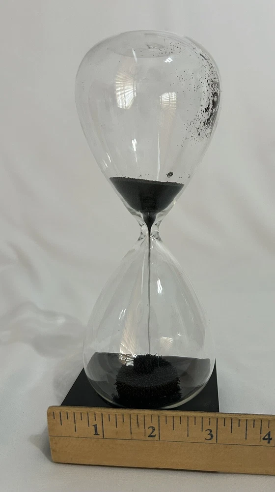 Magnetic Sand Glass Hourglass Timer with Black Wooden Base In great condition No cracks or stains Works as it should Run time 1 minute 50 seconds Described to the best of my knowledge and my opinion. Comes from a smoke and pet free home. Please look at all the pictures carefully. I am a 100% genuine USA seller. Everything for sale is from my own personal collection, no affiliations. All items usually ship within 1 business day of payment received and sometimes the same day, with the exception of vacations. If you have any questions, please let me know EVERY item I have listed is on hand and ready to ship! Have a wonderful day, and THANK YOU for supporting my small home business!