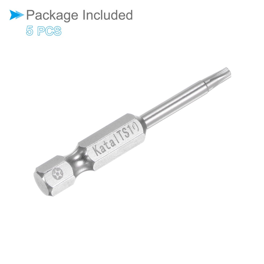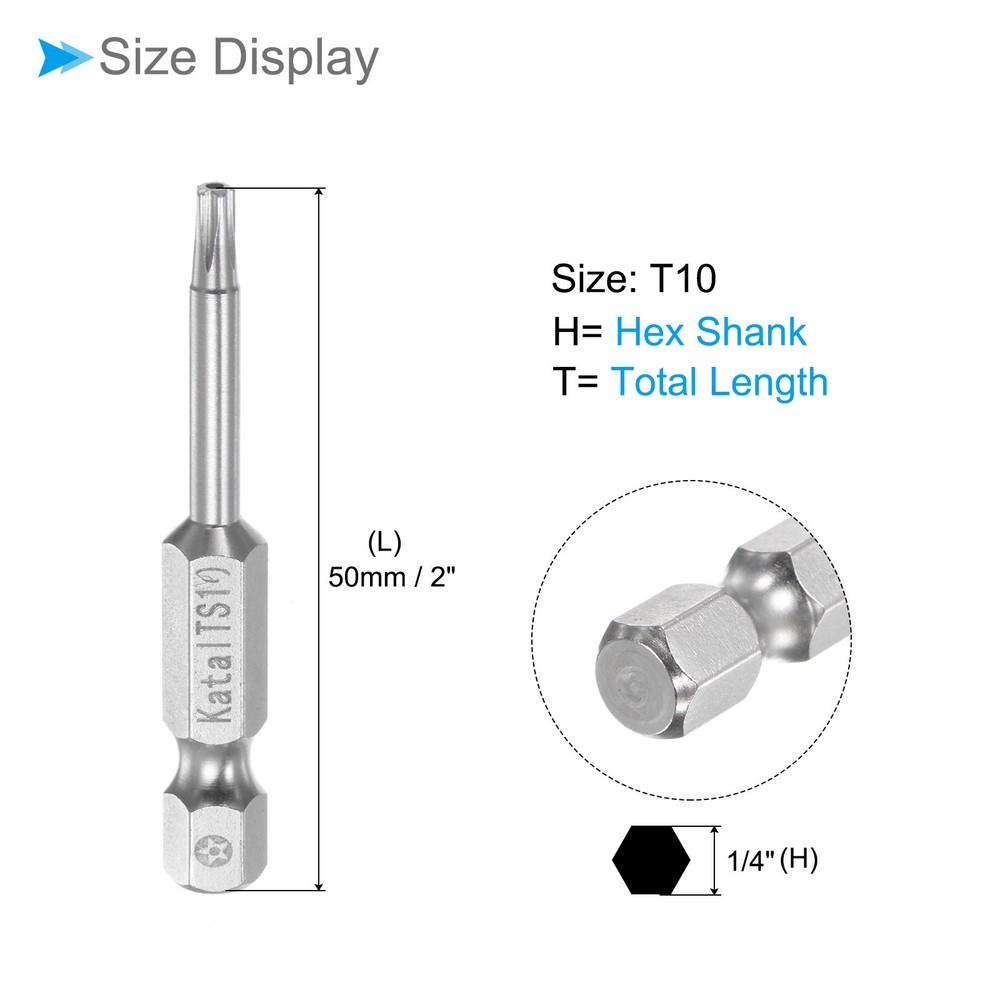 Document Attributes:* Material: S2 Alloy Steel* Size: T10* Hex Shank: 1/4"* Total Length: 50mm / 2"What Is Included:* 5 Pieces x Magnetic Security BitApplications & Features:--- Screwdriver bits set can be used in furniture installation, car maintenance, electronic factory, office installation, kitchen installation, etc.--- The magnetic bit tip can hold the screw securely before installation and after removing the screw to improve efficiency.--- Security bits are made of S2 alloy steel, with good toughness, the surface of the security torx bit set is nickel plating treatment for good anti-rust and wear-resistant and durability, and is suitable for industrial use.Useful Tips:--- Do not turn the screws with mismatched sizes to avoid damage to both the screw and the drill. Magnetic Torx Bits T10 S2 Steel 5 Point Star Screwdriver Bits 5pcs Attributes: * Material: S2 Alloy Steel * Size: T10 * Hex Shank: 1/4" * Total Length: 50mm / 2" What Is Included: * 5 Pieces x Magnetic Security Bit Applications & Features: --- Screwdriver bits set can be used in furniture installation, car maintenance, electronic factory, office installation, kitchen installation, etc. --- The magnetic bit tip can hold the screw securely before installation and after removing the screw to improve efficiency. --- Security bits are made of S2 alloy steel, with good toughness, the surface of the security torx bit set is nickel plating treatment for good anti-rust and wear-resistant and durability, and is suitable for industrial use. Useful Tips: --- Do not turn the screws with mismatched sizes to avoid damage to both the screw and the drill. Hot Item Payment 1.We accept eBay payment . 2.Payment must be received within 7 business days of auction closing. Shipping 1.We ship to your eBay or Paypal address. Please make sure your eBay and Paypal address is correct before you pay. 2.Items will be shipped within 1-3 business day when we received payment. 3.Delivery time depends on destination and other factors. Description Policy Magnetic Torx Bits T10 S2 Steel 5 Point Star Screwdriver Bits 5pcs Attributes: * Material: S2 Alloy Steel * Size: T10 * Hex Shank: 1/4" * Total Length: 50mm / 2" What Is Included: * 5 Pieces x Magnetic Security Bit Applications & Features: --- Screwdriver bits set can be used in furniture installation, car maintenance, electronic factory, office installation, kitchen installation, etc. --- The magnetic bit tip can hold the screw securely before installation and after removing the screw to improve efficiency. --- Security bits are made of S2 alloy steel, with good toughness, the surface of the security torx bit set is nickel plating treatment for good anti-rust and wear-resistant and durability, and is suitable for industrial use. Useful Tips: --- Do not turn the screws with mismatched sizes to avoid damage to both the screw and the drill. Hot Item Payment 1.We accept eBay payment . 2.Payment must be received within 7 business days of auction closing. Shipping 1.We ship to your eBay or Paypal address. Please make sure your eBay and Paypal address is correct before you pay. 2.Items will be shipped within 1-3 business day when we received payment. 3.Delivery time depends on destination and other factors.