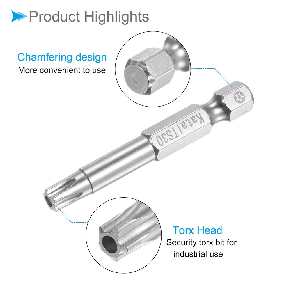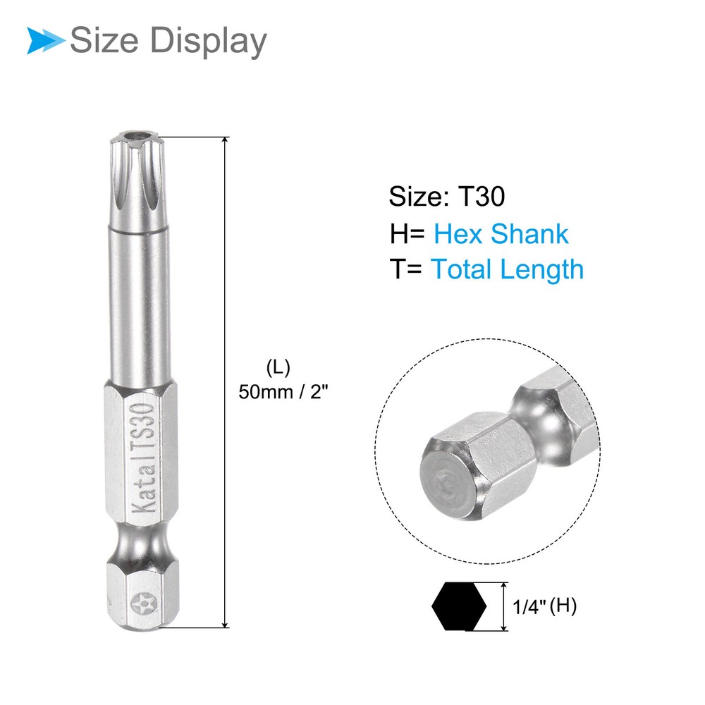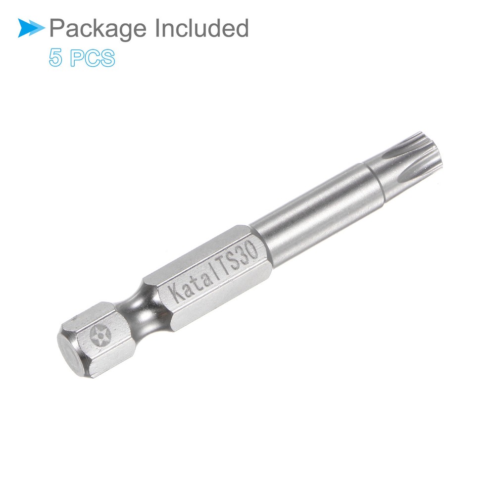 Document Attributes:* Material: S2 Alloy Steel* Size: T30* Hex Shank: 1/4"* Total Length: 50mm / 2"What Is Included:* 5 Pieces x Magnetic Security BitApplications & Features:--- Screwdriver bits set can be used in furniture installation, car maintenance, electronic factory, office installation, kitchen installation, etc.--- The magnetic bit tip can hold the screw securely before installation and after removing the screw to improve efficiency.--- Security bits are made of S2 alloy steel, with good toughness, the surface of the security torx bit set is nickel plating treatment for good anti-rust and wear-resistant and durability, and is suitable for industrial use.Useful Tips:--- Do not turn the screws with mismatched sizes to avoid damage to both the screw and the drill. Magnetic Torx Bits T30 S2 Steel 5 Point Star Screwdriver Bits 5pcs Attributes: * Material: S2 Alloy Steel * Size: T30 * Hex Shank: 1/4" * Total Length: 50mm / 2" What Is Included: * 5 Pieces x Magnetic Security Bit Applications & Features: --- Screwdriver bits set can be used in furniture installation, car maintenance, electronic factory, office installation, kitchen installation, etc. --- The magnetic bit tip can hold the screw securely before installation and after removing the screw to improve efficiency. --- Security bits are made of S2 alloy steel, with good toughness, the surface of the security torx bit set is nickel plating treatment for good anti-rust and wear-resistant and durability, and is suitable for industrial use. Useful Tips: --- Do not turn the screws with mismatched sizes to avoid damage to both the screw and the drill. Hot Item Payment 1.We accept eBay payment . 2.Payment must be received within 7 business days of auction closing. Shipping 1.We ship to your eBay or Paypal address. Please make sure your eBay and Paypal address is correct before you pay. 2.Items will be shipped within 1-3 business day when we received payment. 3.Delivery time depends on destination and other factors. Description Policy Magnetic Torx Bits T30 S2 Steel 5 Point Star Screwdriver Bits 5pcs Attributes: * Material: S2 Alloy Steel * Size: T30 * Hex Shank: 1/4" * Total Length: 50mm / 2" What Is Included: * 5 Pieces x Magnetic Security Bit Applications & Features: --- Screwdriver bits set can be used in furniture installation, car maintenance, electronic factory, office installation, kitchen installation, etc. --- The magnetic bit tip can hold the screw securely before installation and after removing the screw to improve efficiency. --- Security bits are made of S2 alloy steel, with good toughness, the surface of the security torx bit set is nickel plating treatment for good anti-rust and wear-resistant and durability, and is suitable for industrial use. Useful Tips: --- Do not turn the screws with mismatched sizes to avoid damage to both the screw and the drill. Hot Item Payment 1.We accept eBay payment . 2.Payment must be received within 7 business days of auction closing. Shipping 1.We ship to your eBay or Paypal address. Please make sure your eBay and Paypal address is correct before you pay. 2.Items will be shipped within 1-3 business day when we received payment. 3.Delivery time depends on destination and other factors.