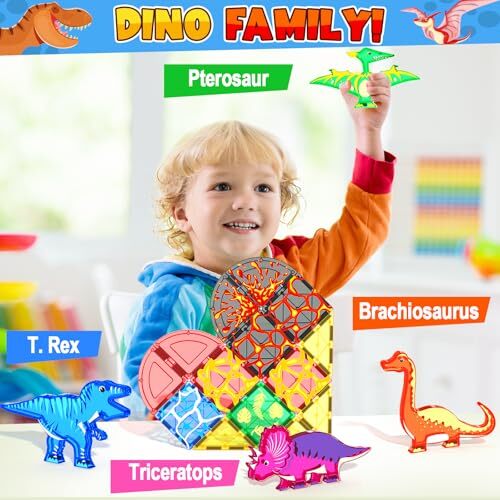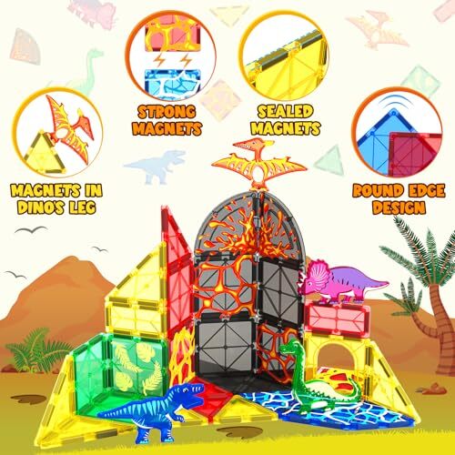 This dinosaur magnetic tile set is a blast for little explorers! The bright colors and easy-to-connect pieces keep my 4-year-old engaged for hours while building volcanoes and dino habitats. Love that it combines STEM learning with imaginative play—the lava effects are a cool touch! Sturdy magnets hold well, and the included dinosaurs add extra fun. Perfect gift that grows with kids’ creativity!