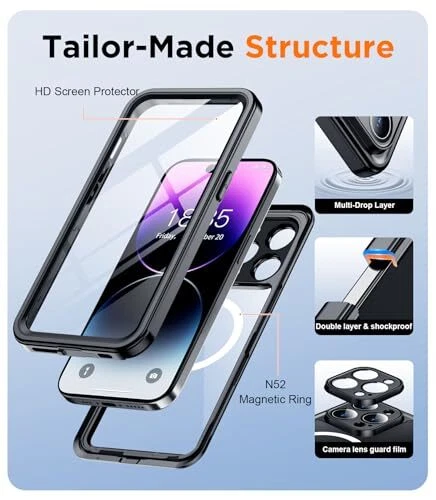 Return Policy Fast Delivery Trusted seller Magnetic for iPhone 14 Pro Case Waterproof,Built-in Screen Protector[IP68 Underwater][Upgrade Military Dropproof][Compatible with MagSafe] Full Body Shockproof for Phone Case 6.1'' - Black Product Description 【IP68 Waterproof】The iPhone14 Pro case is certified with an IP68 waterproof rating, allowing it to be submerged up to 10ft/3m for one hour while providing protection against dust, dirt, water, snow, and rain. Its comprehensive body protection design enables underwater photography and videography. Additionally, the washable feature facilitates easy cleaning, ensuring that both your phone and case maintain a pristine appearance while safeguarding against scratches and fading 【360 Full Body Protection】The iPhone 14 Pro shockproof case has been rigorously tested to exceed Military Grade Drop Test standards at heights of over. Constructed from premium TPU/PC and PET materials with a specialized double-layer frame, this case s maximum durability without yellowing over time. The four anti-collision corners are designed to disperse up to 99% of impact force, effectively protecting your device from damage. Furthermore, this durable iPhone 14 Pro case includes a detachable lanyard to prevent accidental drops 【Strong Magnet & Secure Grip】The MagSafe-compatible case for the iPhone 14 Pro features a robust magnetic ring that enhances connectivity with most MagSafe accessories such as wireless chargers, magnetic car mounts, battery banks, wallets, and more. This allows you to charge without removing the case; perfectly aligned magnets facilitate faster and easier wireless charging than ever before while providing a secure grip 【Ultra-Clear Original Sound Quality】Meticulously engineered for precise alignment with speakers, buttons, and cutouts on the iPhone 14 Pro case ensures optimal sound quality. The upgraded design allows simultaneous access to both the silicone plug covering the bottom sound hole and the charging port cover for improved call clarity—without compromising volume levels—enabling uninterrupted music enjoyment along with clearer call quality through our protective cg. Note: The special button is not scrollable for zooming in/out; it is intended solely for taking photos 【HD Built-in Screen & Camera Protector】This iPhone 14 Pro waterproof case incorporates a built-in screen protector made of tempered glass measuring just 0.33mm thick which maintains an impressive response sensitivity of 99.99% without scratching easily. A specially crafted black camera lens protector offers substantial defense against high-impact forces while enhancing photo aesthetics by preserving image clarity; its thoughtful design includes raised lips measuring 2.5mm around the camera area and bezels of approximately 1.5mm surrounding the back screen—providing extensive overall protection Shipping Returns Payment Shipping Shipping is FREE to all addresses other than APO/PO boxes in the lower 48 states. All our stock ships from US-based warehouses. Shipped via USPS or UPS (depending on location and package weight) Unless stated otherwise, all orders will ship within 24-72 hours of your payment being processed. Check our feedback to see the great reviews of FAST shipping we offer. Returns Seller does not accept returns Payment We currently accept payment via eBay managed payments only. Once payment is cleared, we will dispatch your shipment within 1-3 business days. Please refer to the "Shipping" tab for more information regarding shipping speed to your destination.