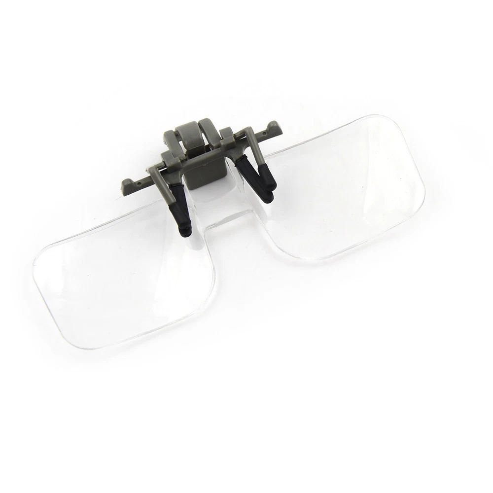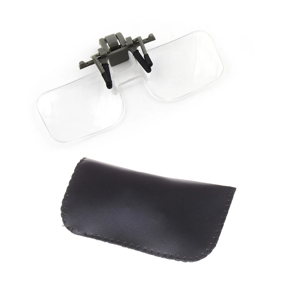 Feature: -A very easy to use clip-on magnifier glasses, you can easily clip to use. Reading, -Stamp collecting, currency identified in the glasses, find features, the fine work -Reading, stamp collecting, money identification, find features, -the fine work use, contain protective clip -Easy to carry, it can be folded. It can be used anywhere. Specifications: Material: Acrylic HD lens Color: Clear Magnification: 2 Size:12cm Note: Please note that the product is not an eyeglass frame, you need to buy Package include: 1xHD Acrylic Magnifier 1X Leather Bag Preview: