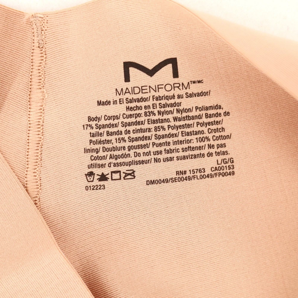 Maidenform Women Beige Lace Intimates Tame Your Tummy Shaping Thong Size L New without tags Comfortable shaping in light control thong Smooth, wide no pinch shaping waistband Semi-sheer, stretch lace Wide cotton gusset Body: 92% nylon, 8% spandex