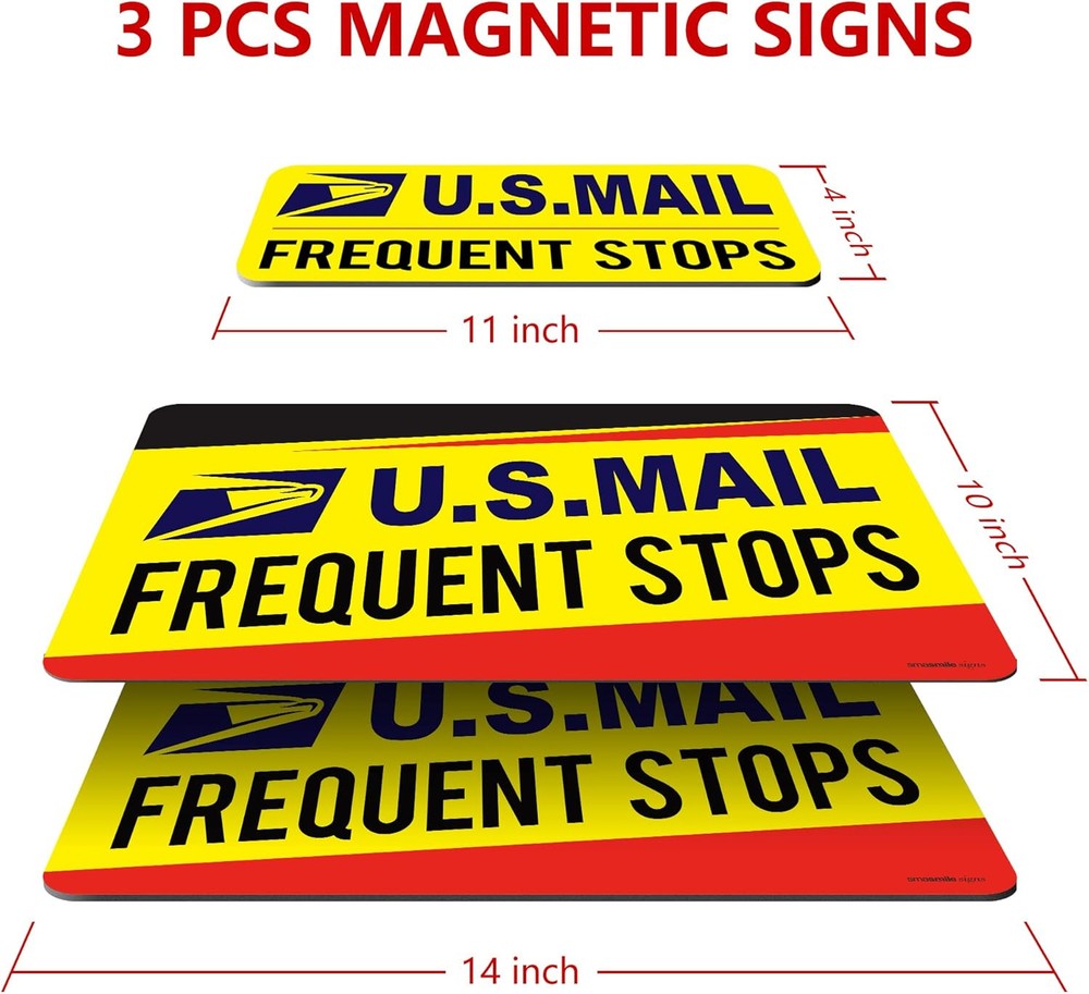 Mail Delivery Driver Magnetic Signs 3 Pack (2×14"×10" & 1×11"×4") Yellow Product Details Product Dimensions: 14 x 10 x 0.39 inches Item Weight: 13.7 ounces Manufacturer: smasmile Country of Origin: China Item model number: SS-3RCT-AUTO-MAIN Brand: SMASMILE Color: Yellow Material: Stainless Steel Mounting Type: Door Mount Orientation: Landscape Pre-printed: Letter Product Dimensions: 14"L x 10"W Number of Pieces: 3 PREMIUM QUALITY: High definition weather resistant ink printing, top quality soft magnets, and sunlight resistant reflective coating create a perfect magnetic sign for vehicles. Strong and vivid design helps identify mail carriers and their vehicles on rural routes. PERFECT SIZE: 3 Pack Magnetic car door Signs for Rural Delivery Carriers, 2 Signs Measure (14×10 inches), Third sign is (11×4 inches). No breakage of the body, super strong magnetic suction, measured 80 mph will not fall off. UNIQUE DESIGN: Our delivery driver magnet is served as not just “A Safety Sign” but “ Car Accessories". Its unique design not only attracts other people attention greatly, but also make your car fashionable without screwing up the car original design. EASY TO APPLY AND REMOVE: The magnets can be applied and removed with ease, making them perfect for mail carriers who use their personal vehicles for work. The magnets won't damage the vehicle's paint and are easy to take off, without leaving any residue behind. Delivery Driver Car Magnet use high quality material , and upgrade the magnet which is strong engouh and never fly off , can stand with the speed up to 80 mph via hundred tested .Driver Car Magnet is easy to use and reusable , just put it on your car / truck / vehicles / Bumper directly , and take it off and put it on the storage bag when you didn't need careful in very cold weather when they are handled as magnets become brittle and in high heat become very pliable. When not in use store them on a flat metal surface like a refrigerator or filing cabinet.Includes:3 Magnetic car door Signs for Rural Delivery Carriers, 2 Signs Measure (10×14 inches), Third sign is (4×11 inches).PREMIUM Quality signs for Delivery Carriers.