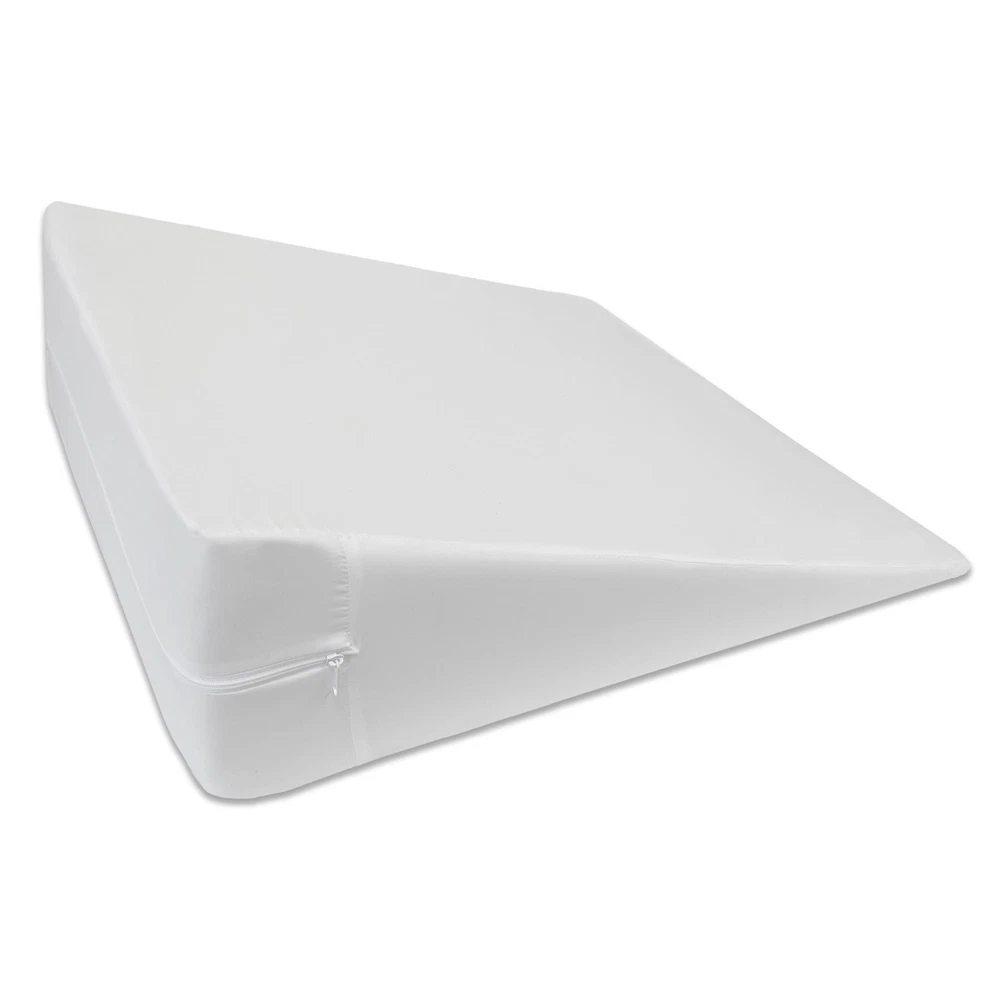 Comfort foam wedge pillow that supports you while reading, working or watching TV in bed. Made with premium high-density support foam, this pillow is the perfect blend of comfort and support. This multi-angle wedge pillow helps adults maintain an upright position while taking pressure off the upper back muscles. An angled sleeping position helps drain sinus fluid and soothes the airways, relieving chest tightness so you can breathe easier. It's also great for elevating your legs to improve blood circulation. pillow is hypoallergenic Made with premium high-density support foam Ergonomic shape for customized support to suit your needs Upright, tilted or elevated sitting position Antibacterial treated white pillowcase is removable and machine washable Stay upright while reading or watching TV Lying at an angle helps breathe easier, reducing acid reflux and snoring Elevating your legs helps improve blood circulation