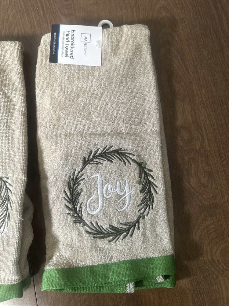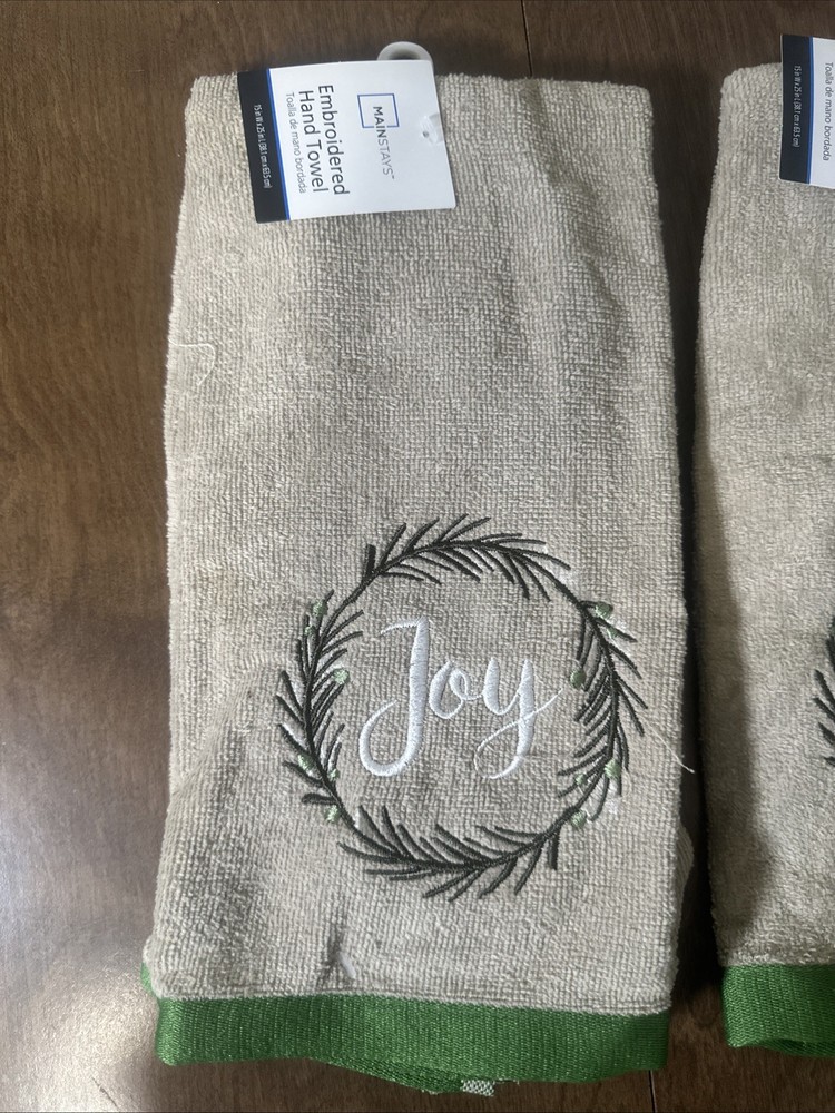 The Mainstays Embroidered Hand Towel in Joy design is a set of 2 hand towels made of 100% cotton in a taupe color. The towels feature an embroidered joy pattern, making them a stylish addition to any bathroom or room. With dimensions of 15x25 inches, these soft hand towels are machine washable for easy care and are ideal for adults in need of luxurious and decorative bathroom accessories. Perfect for adding a touch of joy to your home, these hand towels are a practical and beautiful choice for any space.