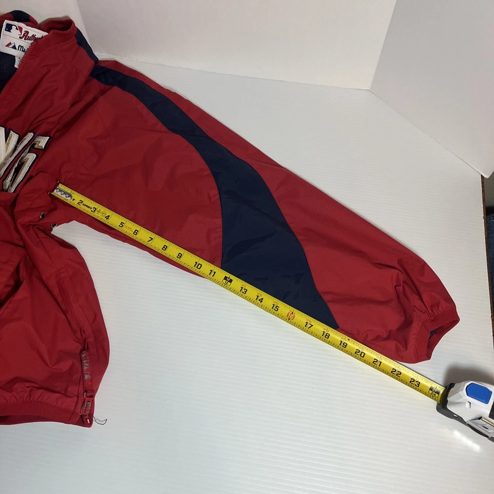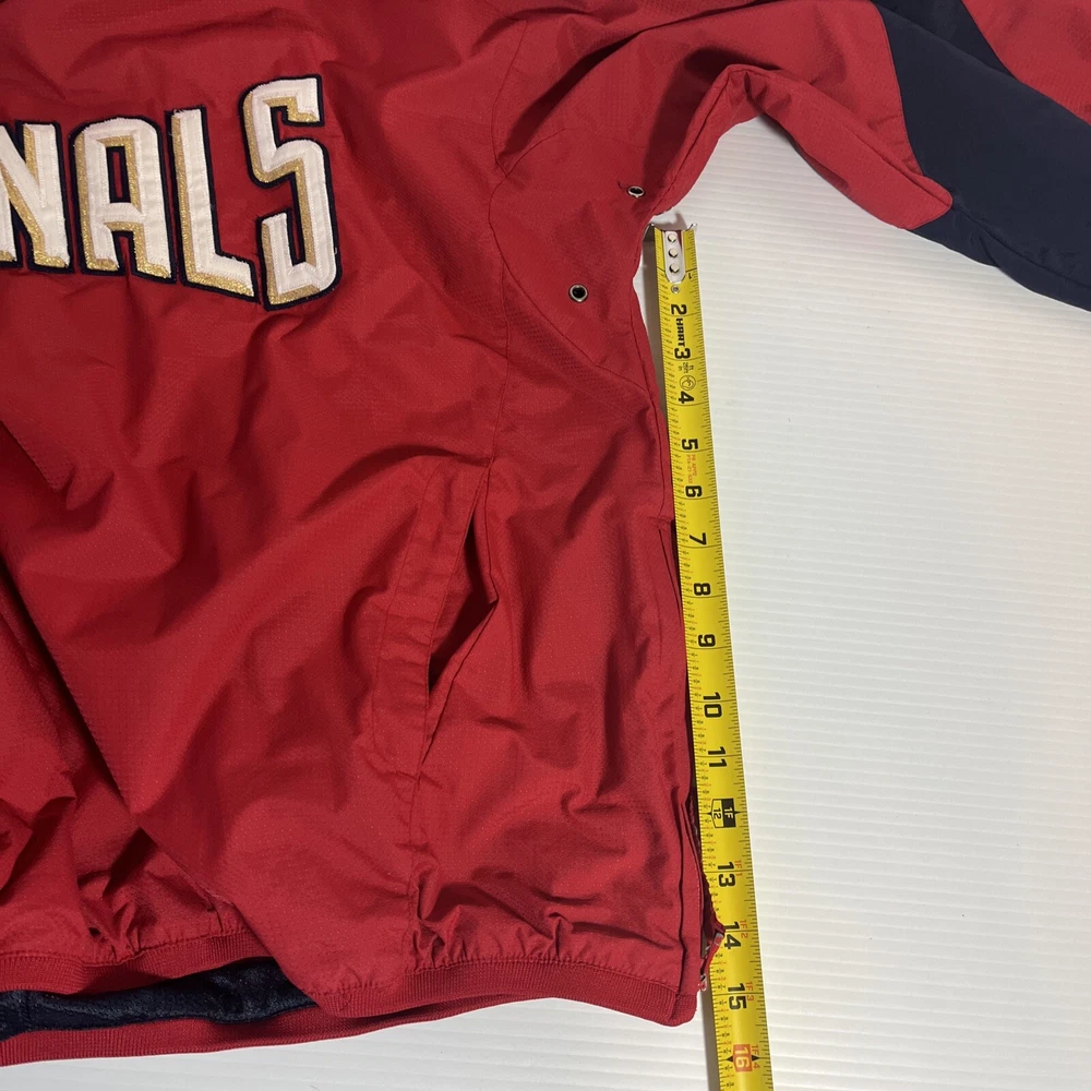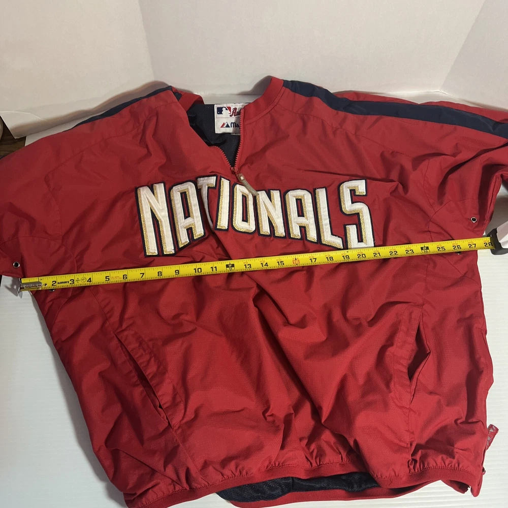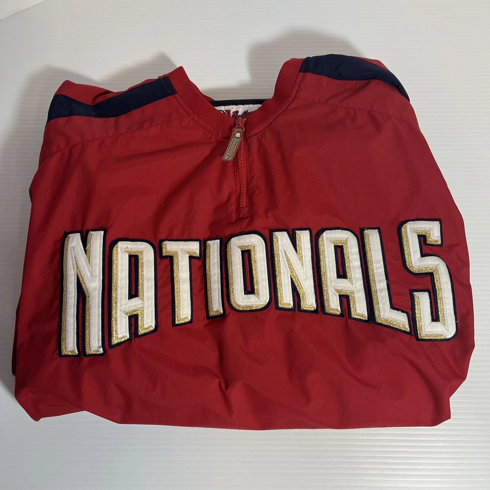 The Majestic Authentic Nationals Men's Jacket is an officially licensed MLB product. This red 1/4 zip pullover warm up windbreaker jacket is made for men and is extra large in size. It is designed for regular season wear and is perfect for fans of the Washington Nationals. Very good condition Smoke free environment We try to ship same day or next day Feel free to message us with any questions