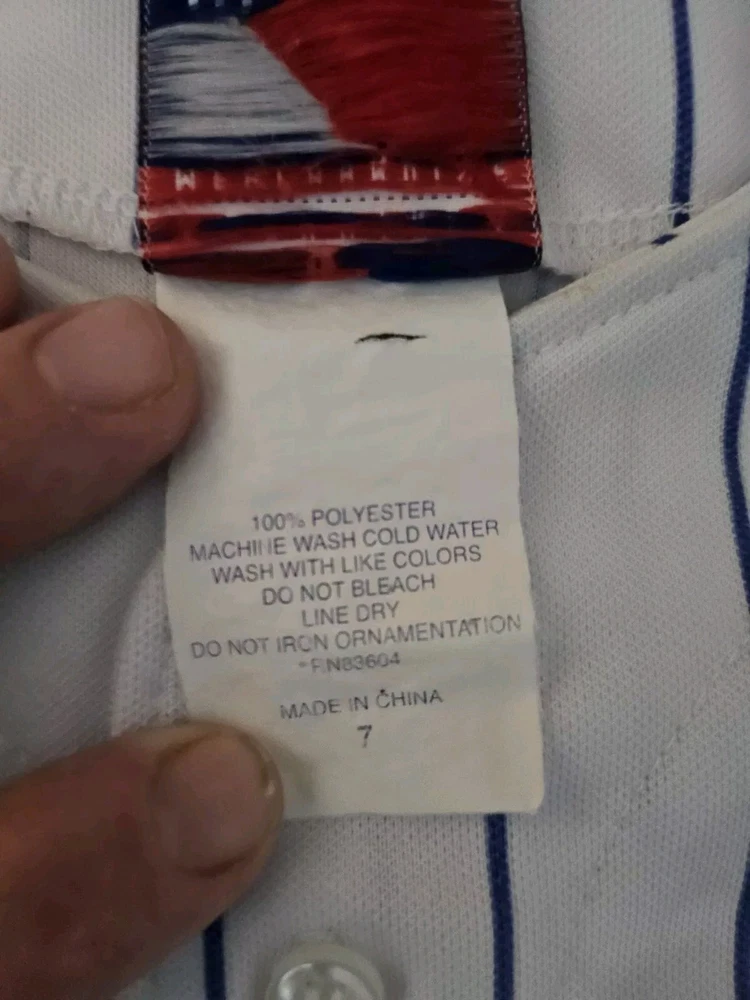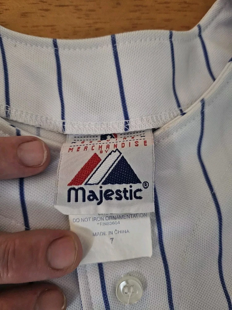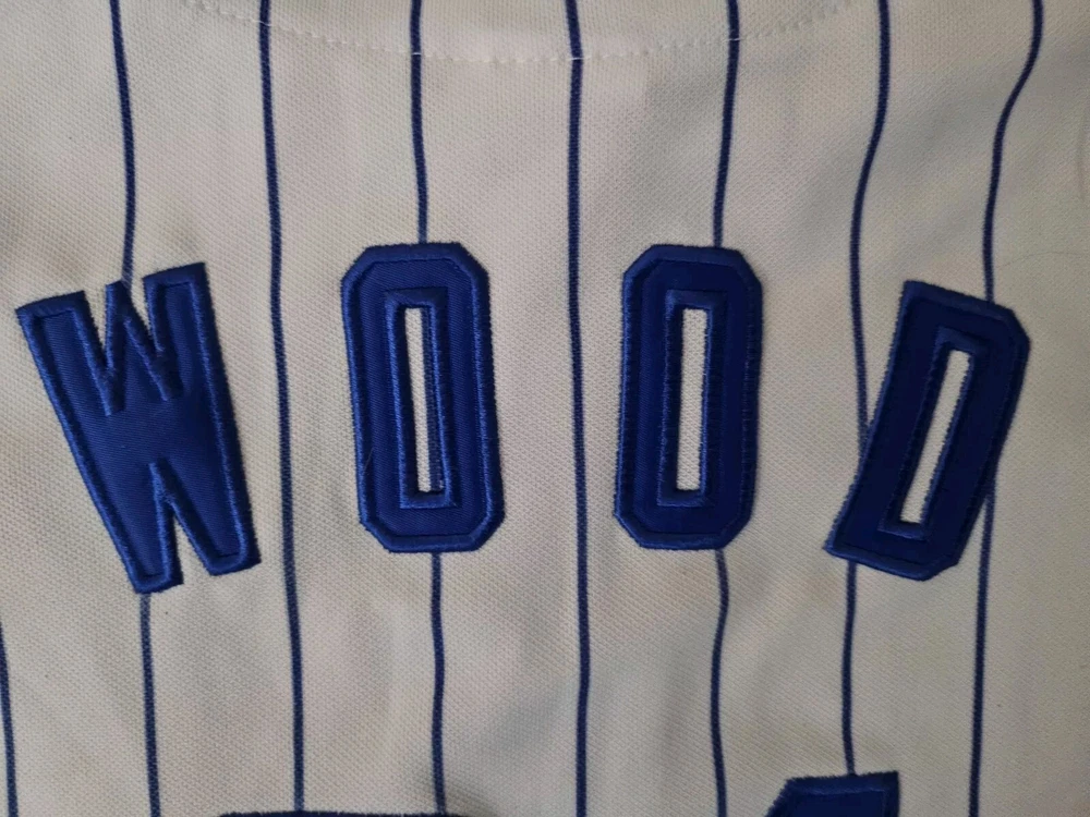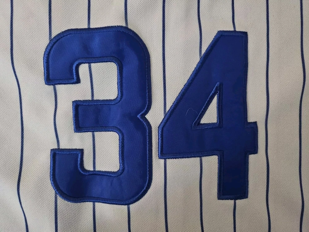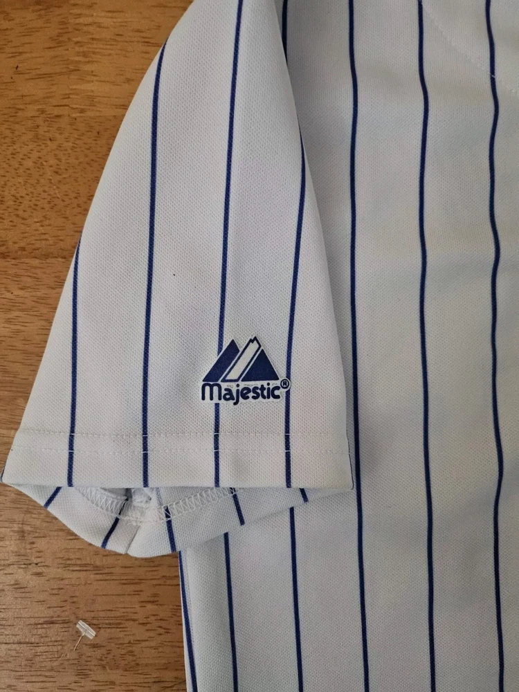 Show your support for the Chicago Cubs with this officially licensed Majestic jersey featuring Kerry Wood's #34. Made for boys in size small, this white jersey is perfect for fans of the Major League Baseball team. The jersey is embroidered with the team's pinstripe design and is perfect for wearing to games or for everyday wear. Don't miss out on the chance to own this piece of fan apparel!