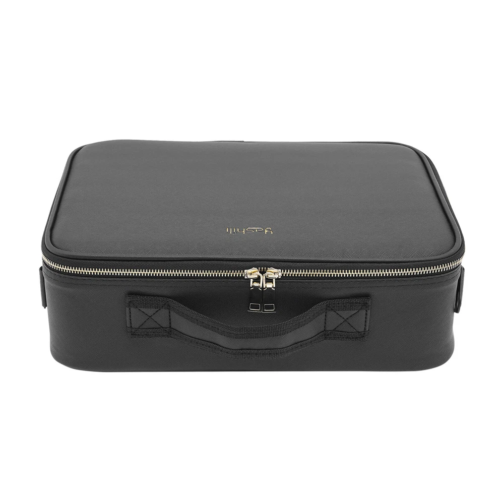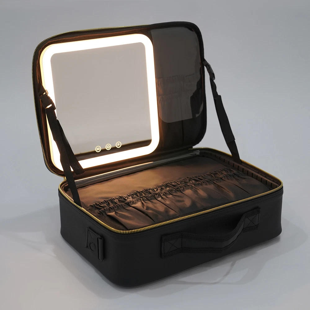 Makeup Bag with Mirror w/ Lights Settings Cosmetic Bag,Travel Makeup Train Case Makeup Bag w/ Mirror & Lights 3 Color Settings Travel Makeup Train Case Cosmetic Bag Organizer Portable Artist Storage Bag with Adjustable Dividers Description Makeup Bag with Mirror and Lights This makeup bag with mirror and lights can be used for both cosmetics storage and makeup. The high-definition illuminated makeup mirror can help you complete all kinds of makeup effects, meet all kinds of needs of your daily commuter makeup or delicate evening makeup, and let you complete a magnificent transformation! Key Features Must-have When Travel: The large capacity of 2000 mAh and the type-c interface leave you away from the problem of batteries running down. And built-in high-definition cosmetic mirror can let you quickly complete your makeup needs during the journey. Three Color Lighting: The professional large makeup bag with a mirror provides three color lighting modes. You can touch the middle button control switch or press and hold the button P to adjust the light brightness or touch the button M to change the light colors to create a more suitable makeup environment. 4K Large Mirror: The makeup mirror included in this makeup bag is a 4k large mirror with the size of 9.3*9.4in, which can restore details with 1:1 high fidelity, simulate the daily commute lighting environment, and restore your makeup effect under natural light. Freely Adjust: You can freely adjust the position of the partition according to the volume and shape of your cosmetics to keep the internal cosmetics in order at all times. Thoughtful Design: The makeup brush storage areas can store the makeup brush, clearly showing the type of brush, and protecting the mirror. It is covered with film so the makeup residue can be cleaned with a gentle wipe. Stylish and Exquisite: This makeup bag has classic and versatile black color and its exquisite appearance is so stylish that you can't help but fall in love with it Quality Assurance: This makeup bag uses high-quality PU, which is of high quality and durable. In addition, its partition is made of EVA and wood, which is not easy to break. What's more, the zipper made of alloy is waterproof, anti-corrosion, and also does not easy to lose color. Easy to Carry: This makeup bag unlocks more ways of carrying. The shoulder strap design and the pull rod pocket design allow you to carry it on shoulder or on the luggage rod, just to give you a better and more comfortable travel experience. Ready to Use: It has a one-piece design without the need for installation. You can use it directly when you receive it, which is very convenient. Details Supporting Strings: There are two strings to keep the makeup bag open and facilitate your daily use. Double Zipper Design: The double zipper design of this cosmetic bag makes it easy for you to open and get cosmetics. Application This makeup bag can be used as a desktop organizer and makeup organizer, and can also store all kinds of cosmetics, nail polish, nail scissors, paper towels, and other daily appliances . Specification Material: PU, Glass, EVA, Wood, Fabric Color: Pink/Black Shape: Rectangular Light Colors: Cold Light, Natural Light, Warm Light Cold Light Color Temperature: 5300K Natural Light Color Temperature: 4300K Warm Light Color Temperature: 3600K Rated Input Voltage: 5V Battery Capacity: 2000mAH Mirror Size: 24.5*26cm/9.6*10.2in Cosmetic Brush Storage Board Size: 34*23.5cm/13.4*9.3in Product Size: 38*27*12cm/15*10.6*4.7in Package Size: 40*29*14cm/41.3*14.2*9.8in Net Weight: 1.5kg/3.3lbs Gross Weight: 2kg/4.4 lbs Package Included 1* Makeup Bag with Mirror and Lights 1* Charging Cable 1* S houlder Strap Payment Delivery details Terms of sales About us Contact us Payment We accept ebay payment 。 Fees such as import duties, taxes are not included in the item price or shipping costs. These charges are the buyer's responsibility. Delivery details Shipping: 2-9 working days to: USA Terms of sales We maintain high standards of excellence and strive for hundred percent customer satisfaction. Feedback is very important to us. We hope that you contact us immediately before you give neutral or negative feedback, so that we can address your concerns. It is impossible to address issues if we do not know about them! About us Your satis faction is our ultimate goal. We work hard to earn your trust and future business. Our certified technicians have tested each item before shipping. The unit comes with 1 year limited warranty on all manufacturing defects. a) If you receive a defective item, you may return it or ask for a discount. Please contact us within 14 days after you receive the package. b) What you returned must be intact and in its original packaging as re? u. Customer is responsible for shipping costs of the returned item. c) We will cover the cost of shipping back t with the shipping rate indicated in the registration page. We will send you a new unit or refund the full payment you paid. Thank you. Contact us Business Hour Business Hour: Monday To Friday: 8:30 AM to 5:00 PM (Beijing China time) Due to time zones, our reply to your questions may not be immediately. But within above working time, we will reply your email within 24 hours. If it's non-workdays, please kindly be patient and wait till Monday. Please contact us with ebay message. Please feel free to contact us if you have any questions. Monday To Friday: 8:30 AM to 5:00 PM (Beijing China time) Due to time zones, our reply to your questions may not be immediately. But within above working time, we will reply your email within 24 hours. If it's non-workdays, please kindly be patient and wait till Monday. Please contact us with ebay message. Please feel free to contact us if you have any questions.