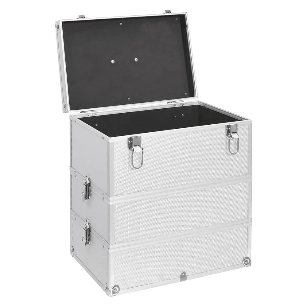 EAN:8718475730033 Number of Packages:1 parcel Diameter:0 in Details: Our make-up case is the ideal solution for keeping your cosmetics neatly organized. Simply pack everything you need in this practical beauty case and take it with you! Made of wood, ABS sheeting, as well as aluminum, this make-up case will handily store your cosmetics and maintain them in perfect condition. This vanity case features 3 detachable tiers, providing ample storage space for your cosmetics and beauty products. Additionally, it features a carrying handle which enables you to easily take along everywhere you go! Color: Silver Material: Aluminum, ABS and wood Dimensions: 14.6" x 9.4" x 15.7" (L x W x H) With 3 detachable tiers With a carrying handle California Proposition 65