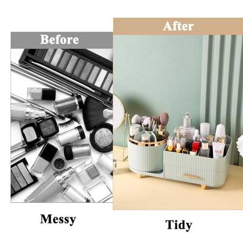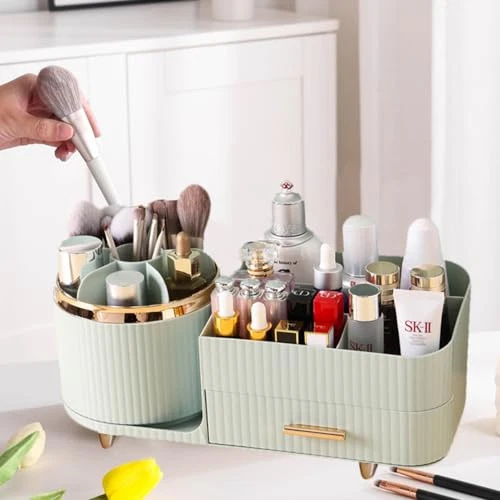 Menu 1. We require immediate payment. 2. We currently accept payment via eBay managed payments only. 3. Once payment is cleared, we will dispatch your shipment within 1-3 business days. Please refer to the "Shipping" tab for more information regarding shipping speed to your destination. Makeup Organizer Countertop with Drawer 360 Rotating Brush Holder Storage Large Capacity Skincare Cosmetic Display Cases for Vanity Bathroom Desktop, Model 3016 Green Product description Multi-functional Design: The makeup organiser is a combination of a make-up brush organiser and a divided skincare organiser, which is perfect for keeping things neatly organised. Smooth Rotation: 360° rotation of the makeup brush holder makes it easy to get to the items you need quickly, and the four supporting feet on the bottom keep the make-up organiser stable. Space-saving:The left side of the makeup organiser is for makeup brushes, eyeliners, lipsticks and nail polishes, the right side is for lotions, sunscreens, serums, eyeshadow palettes, and the bottom drawer is suitable for storing face masks and jewellery. Quality Workmanship: Stylish makeup organizer has a smooth surface, thick PET material is not easy to damage, suitable for use in the bathroom, bedroom, desktop, countertop. Excellent Present: The cute and practical makeup organiser can be used as a present for Christmas, Mother's Day, Birthday, Thanksgiving Day, Valentine's Day. PLEASE MESSAGE US IF YOU HAVE ANY OTHER QUESTIONS, AND MANY THANKS FOR READING ALL OF THIS. Copyright ©#. All Rights Reserved.