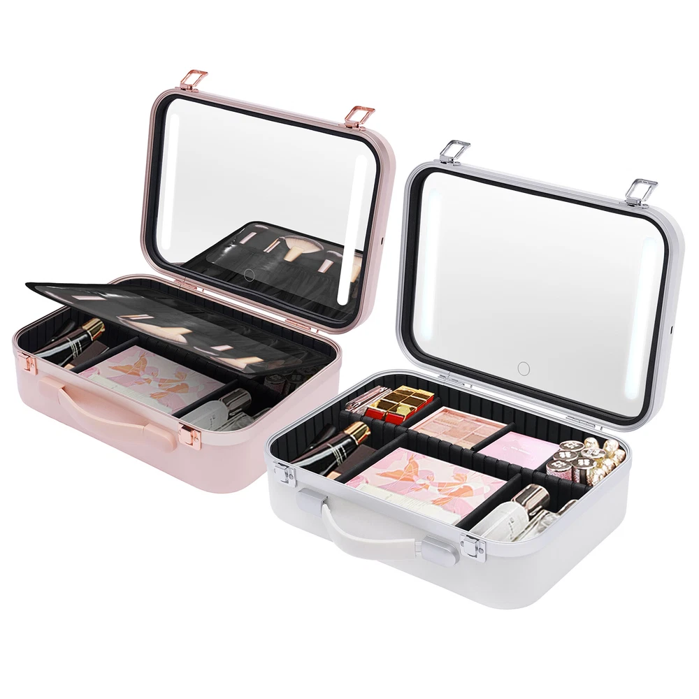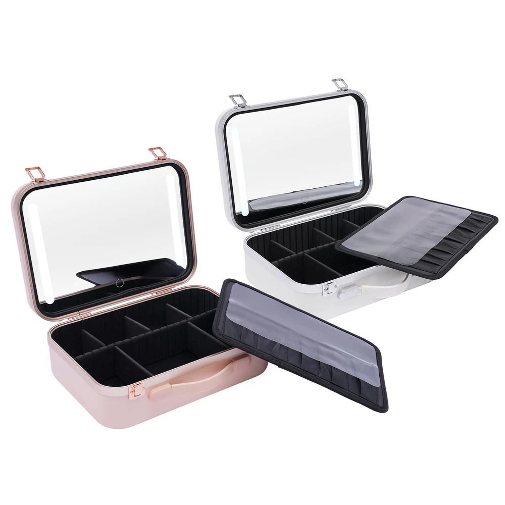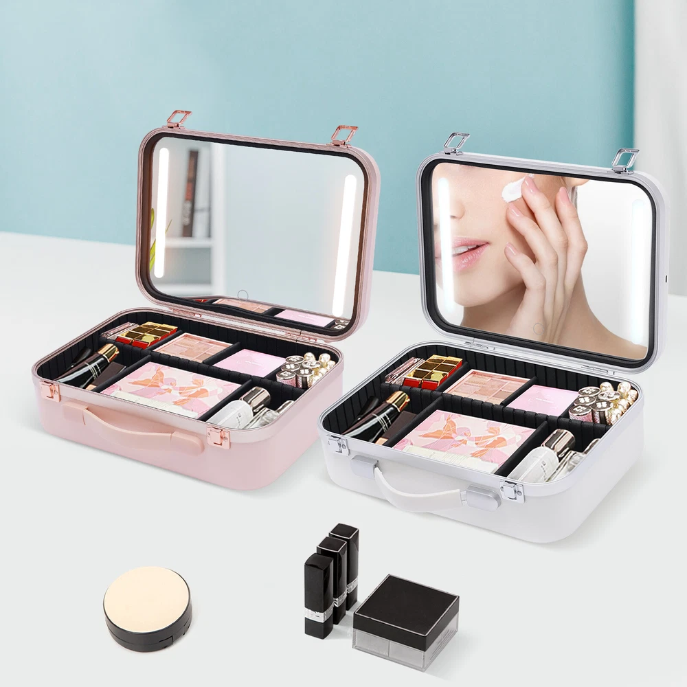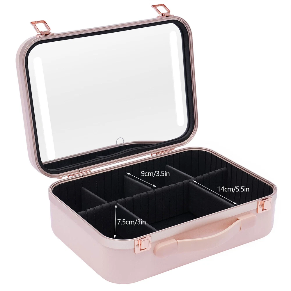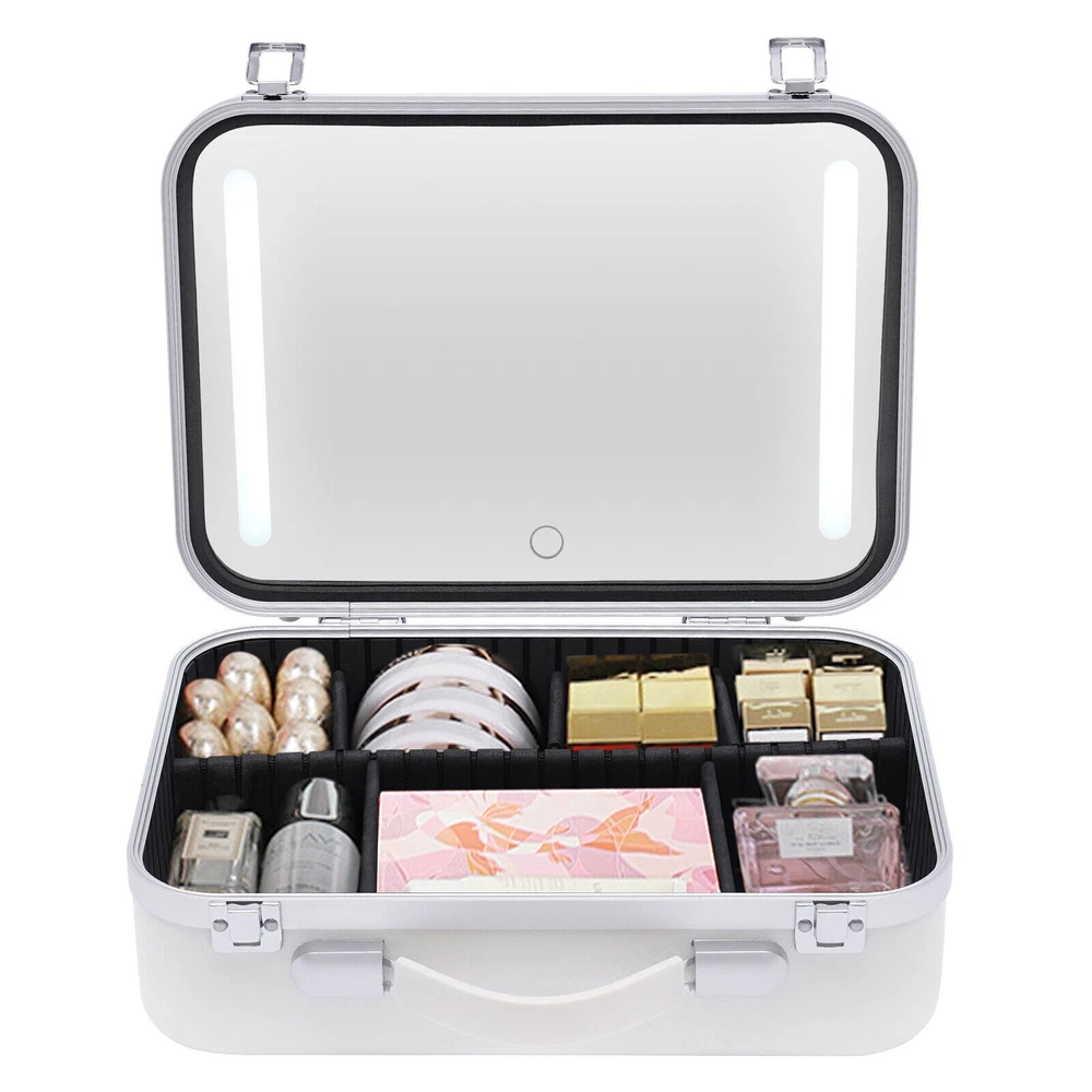 Specification Material: PC, Aluminum Alloy, Metal, Glass Color: Pink/White Style: Modern Process: Electroplating Power Supply Mode: Power Cord, Power Bank, Built-in Battery Rated Voltage: 5V Placement: Tabletop Type of Charging Port: Type-c Light Source: 88 * LED EU Energy Label Efficiency Labeling Class: A++to E Efficiency: E Battery Parameters: 2000mAh Lithium Battery Switch Type: Touch Screen Light Color: 6500K: 4600K: 3500K=Warm Yellow: Neutral: Cool Gross Weight: 1.8kg/3.96lbs Net Weight: 1.6kg/3.52lbs Package Size: 38.6*30.5*16.2cm/15.19*12*6.37in Product Size: 34*12*24cm/13.4*4.7*9.4in Storage Layer Depth: 7.5cm/3in Storage Layer Width: 9cm/3.5in, 14cm/5.5in Makeup Brush Board Size: 32.5 * 22.5cm / 12.79 * 8.85in Mirror Size: 33*23cm/12.99*9.05in 💖welcome to my store💖 Description The product integrates a high-definition mirror and intelligent fill light to solve the problem of insufficient light for daily makeup, illuminates the details of your makeup, restores the real color to meet your ultimate requirements for makeup, and enjoys an elegant and confident lifestyle. Key Features Sturdy and Durable : The PC material with the texture layer, coloring layer, and shaping layer composite structure is scratch-resistan t, waterproof , and pressure-resistant to serve you for a long time without damage. Three-color Dimmable : The three-color dimmable light allows you to easily adjust the brightness and light color (cool light, neutral light, warm light) to meet the needs of different scenarios. Long press to adjust the brightness, and lightly press to adjust the light color. Large Capacity : The deepen and widen makeup box (3*1.5*5.5 inch) provides you with enough storage space. The removable partition allows free adjustment of the storage structure to accommodate items of different sizes. Pink/White Available : The makeup case is available in elegant white and lovely pink, which can meet different needs and preferences. Excellent Endurance : 2000mAh capacity lithium battery makes the product last for more than eight hours in medium brightness to avoid frequent charging. Easy to Carry/Store : The lightweight and compact makeup case (weight 3.52 pounds, size 13.4*4.7*9.4 inches) is easy to carry and store, making it easy to use for travel and business trips. Easy to Clean : The smooth surface and simple structure provide you with easy cleaning allowing you to simply use a damp cloth to gently wipe. Ideal Gift : This makeup case with both practicality and beautiful appearance is an ideal gift for your girlfriend and lover on Valentine's Day, birthday, Halloween, Christmas and anniversaries, etc. Customer Service : We aim to provide quality products and services. If you have any problems, please feel free to contact us. We will reply and solve the problem for you as soon as possible. Details Charging Indicator : The indicator is red when charging and green when full so you can keep track of the charging status. It will automatically limit the current after fully charged without worrying about overcharging and can be used during charging. Type-c Charging Port : U niversal Type-c charging port allows you to easily charge it with the phone charging cable and power bank. Comfortable Handle : Ergonomically curved handle allows you to carry the case easily. Aluminum Frame : The strong, drop-resistant aluminum frame increases the durability and extends the service life of the product. Brush Storage Board: The shelf with multiple brush bags and dustproof board not only provides storage and dust protection, but also protects the mirror from scratches. Plated Hardware : The shiny rose gold plated hardware makes the makeup case more delicate and elegant. Metal clasps hold the case in place to prevent accidental spills. Anti-slip Feet : The four anti-slip feet at the bottom improve the stability of the product. Sensitive Touch Switch : The sensitive touch switch on the mirror allows you to easily adjust the light color and brightness. Application This makeup case is suitable for organizing and storing all kinds of cosmetics, skin care products, makeup tools, etc in bedrooms, bathrooms, dressing tables, etc. Specification Material: PC, Aluminum Alloy, Metal, Glass Color: Pink/White Style: Modern Process: Electroplating Power Supply Mode: Power Cord, Power Bank, Built-in Battery Rated Voltage: 5V Placement: Tabletop Type of Charging Port: Type-c Light Source: 88 * LED EU Energy Label Efficiency Labeling Class: A++to E Efficiency: E Battery Parameters: 2000mAh Lithium Battery Switch Type: Touch Screen Light Color: 6500K: 4600K: 3500K=Warm Yellow: Neutral: Cool Gross Weight: 1.8kg/3.96lbs Net Weight: 1.6kg/3.52lbs Package Size: 38.6*30.5*16.2cm/15.19*12*6.37in Product Size: 34*12*24cm/13.4*4.7*9.4in Storage Layer Depth: 7.5cm/3in Storage Layer Width: 9cm/3.5in, 14cm/5.5in Makeup Brush Board Size: 32.5 * 22.5cm / 12.79 * 8.85in Mirror Size: 33*23cm/12.99*9.05in Package Included 1*Makeup Case 1*Charging Cable 1*Makeup Brush Board Notes Please allow the slight color difference caused by the shooting light and 1-3cm error due to manual measurement. Please make sure you do not mind before you order. Payment Delivery details Terms of sales About us Contact us Payment We accept ebay payment 。 Fees such as import duties, taxes are not included in the item price or shipping costs. These charges are the buyer's responsibility. Delivery details Shipping: 2-9 working days to: USA Terms of sales We maintain high standards of excellence and strive for hundred percent customer satisfaction. Feedback is very important to us. We hope that you contact us immediately before you give neutral or negative feedback, so that we can address your concerns. It is impossible to address issues if we do not know about them! About us Your satis faction is our ultimate goal. We work hard to earn your trust and future business. Our certified technicians have tested each item before shipping. The unit comes with 1 year limited warra
