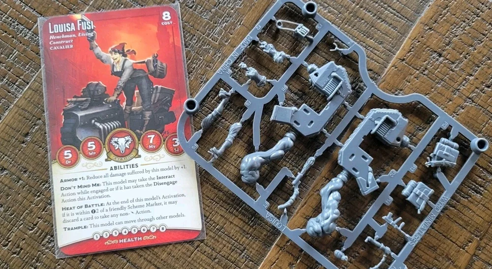 Malifaux Louisa Fusi Cavalier Model new on sprue with card and base.