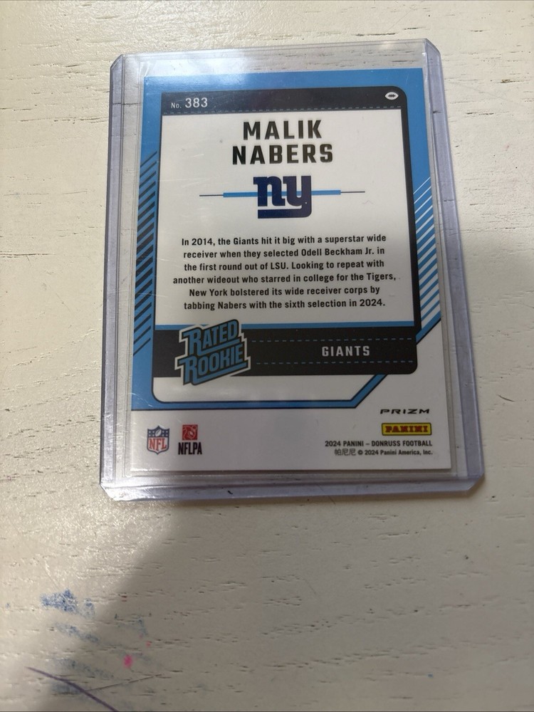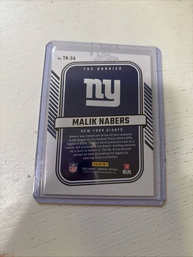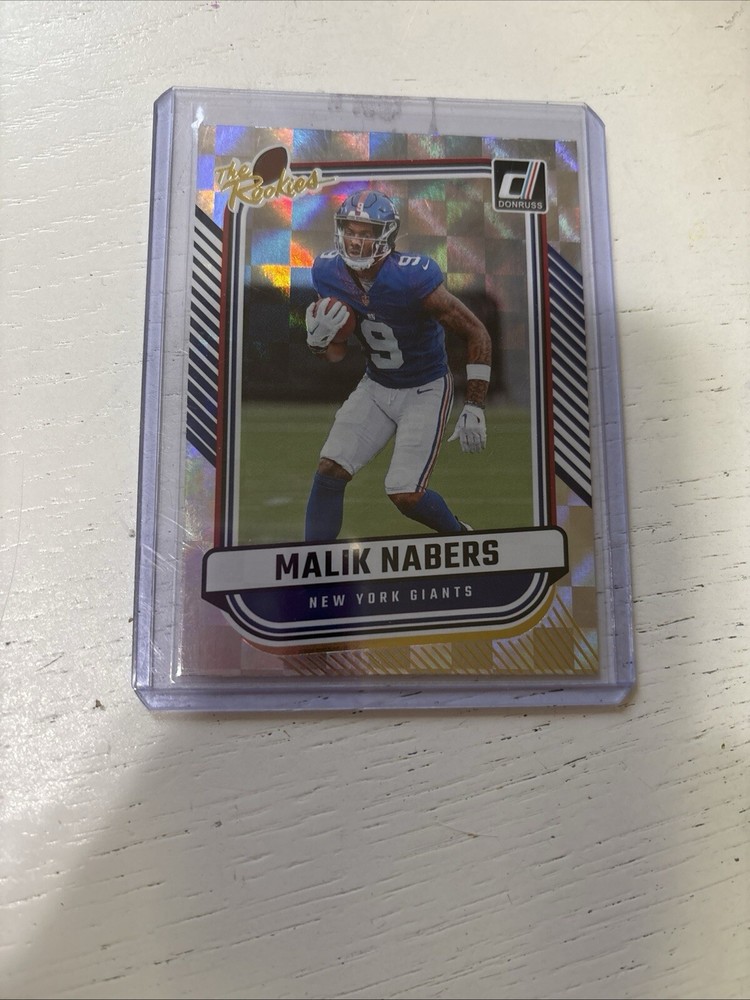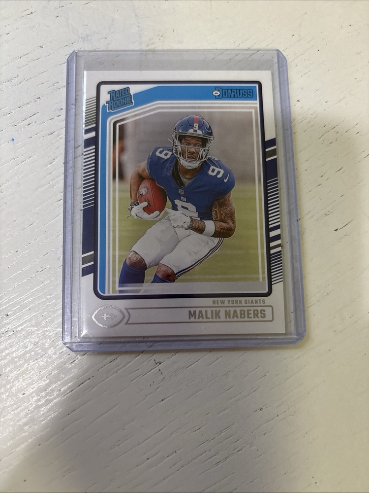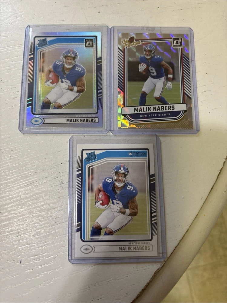 Get your hands on the Malik Nabers Rated Rookie Card Lot, a must-have for any football fan! This lot includes three cards featuring the talented wide receiver in his Optic Halo and Donruss Rated Rookie designs. All cards are manufactured by Panini and belong to the 2024 season. The cards are perfect for collectors and enthusiasts alike, with each card showcasing the National Football League (NFL) and the sport of football. The features of the cards include the rookie status of Malik Nabers, making this lot a great addition to any sports trading card collection. Don't miss out on this limited edition lot!