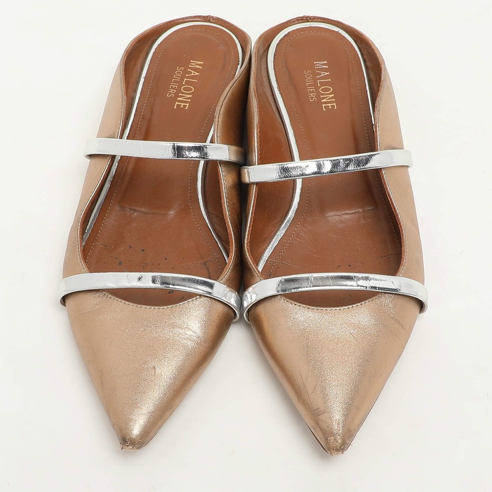 Our eBay Store About Us Contact Us Add to Favorite Sellers Malone Souliers Metallic Leather Maureen Flats Size 39 $226 The beloved Maureen silhouette, in a flat design for easy wear and styling. Crafted in metallic leather, they bring effortless polish to any outfit—day or night. Product Details Brand Malone Souliers Color Metallic Material Leather Size 39 Certified by The Luxury Closet This item has gone through a detailed authentication process overseen by our experts. We offer a lifetime guarantee of authenticity on all our items. How We Check The in-house team of experts at The Luxury Closet is highly trained to verify the authenticity and the condition of the luxury products. They ensure that only 100% authentic items are put on sale.The evaluation process is unique with its own mix of assessment criteria and differs according to the category. Each item is evaluated based on the following combination of hallmarks, hardware, stitching, symmetry, material, craftsmanship, stamping, codes, hologram stickers, and packaging. Our authenticators also check if the items have been modified or amended (e.g., aftermarket diamonds, replaced batteries, repaired bags, etc.) International Buyers Import duties, taxes and charges are not included in the item price. These charges are the buyers responsibility. Please check with your country’s customs office to determine what these additional cost will be prior to buying.