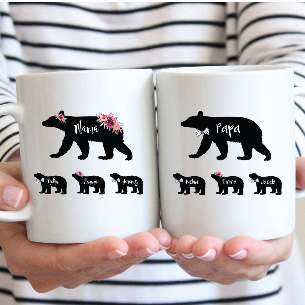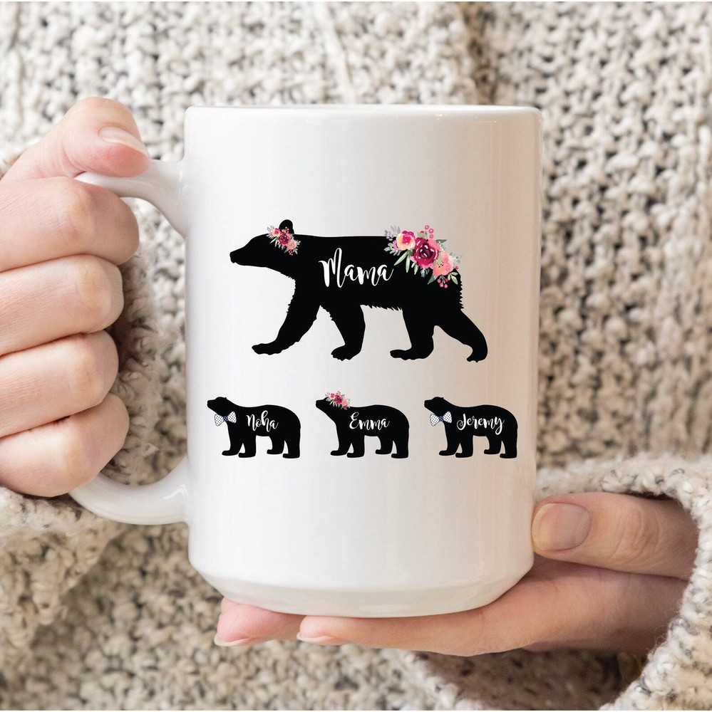 Mama Bear Coffee Mug Personalized Mom Mug Christmas Gift From Son Mom Gifts From Daughter Gift From Husband Mom Gift From Kids Product Details.. This high quality 11oz. ceramic white mug has a premium hard coat that provides crisp and vibrant color reproduction sure to last for years. Perfect for all hot & cold beverages. The highest quality printing possible is used. It will never fade no matter how many times you wash it. Material: 100% Ceramic. Print both sides. Dishwasher and Microwave Safe. High Gloss + Premium White Finish. Printed in the U.S.A. Personalized & Custom. We support personalized and custom mug to add custom, when placing an order, you can add notes to the "order note" in shipping address section. Also you can contact us directly via message. Shipping Info. Ready to ship in 1 to 2 business days, All products are made-to-order and proudly printed in the United States. Shipped by USPS and DHL, You will receive your order in 5-7 days. Replace & Refund. All products are defective during shipping broken, chipped will be replaced free of charge. You are not satisfied with the product, we will refund 100% money to you. If any other issues arise, please do not hesitate to message, we would be more than happy to assist you.