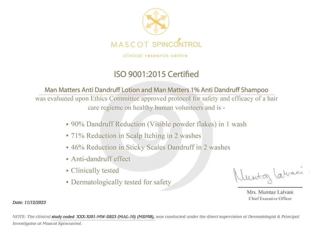About this item IDENTIFY YOUR DANDRUFF STAGE : STAGE 0 - Experiencing mild dandruff. STAGE 1 - Experiencing moderate dandruff and itchy scalp. STAGE 2 - Severe dandruff with dry and itchy scalp Ingredients: Aloe Vera, Pro Vitamin B5, Ichthyol Pale, Zinc Pyrithione And Tea Tree Extract Target Gender: Male Product Description Previous page Fights Heavy Dandruff The combination of dandruff lotion and anti dandruff shampoo is enriched to combat heavy dandruff. Next page Combats Dandruff Soothes Scalp Reduces Flaking Previous page Step 1 Apply dandruff lotion on the scalp and leave it overnight or for a period of 6 hours Next page Step 1 Step 2 Step 3 How will we help you solve dandruff? Previous page Stage 1 (Less than 6 months) - Mild dandruff For stage 1 (less than 6 months), treat it with Daily Use Anti Dandruff Shampoo. Use it everyday for 12 weeks to see the best results