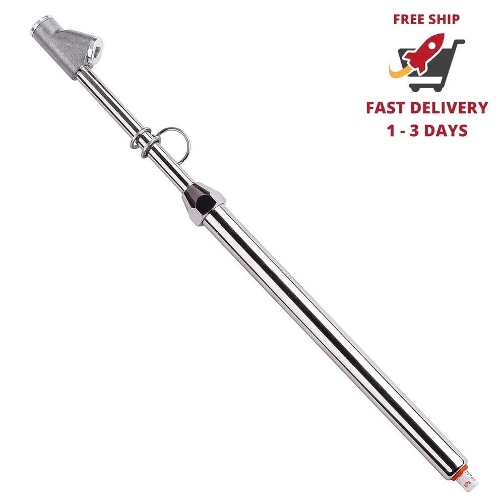 Amplio rango de medición: este manómetro mide presiones de 10 a 160 libras o de 80 a 1100 kPa, lo que lo hace adecuado para varios vehículos, incluidos automóviles, camiones, motocicletas y bicicletas. Materiales de alta calidad: el manómetro está fabricado con aleación de zinc y cobre, lo que garantiza su durabilidad. Los componentes clave incluyen un cabezal doble de aleación de zinc, un núcleo de cobre y tubos de cobre niquelados, que contribuyen a lecturas precisas y confiabilidad a largo plazo. Escala de doble cara: la regla de plástico del manómetro tiene escalas en ambos lados: números negros para 10 a 160 libras y números rojos para 80 a 1100 kPa, lo que permite a los usuarios elegir la unidad de medida que se adapte a sus necesidades. Mandriles de doble cabezal: equipado con mandriles de doble cabezal, el manómetro incluye un cabezal recto para acceder a las ruedas exteriores y un cabezal en ángulo para un acceso más conveniente a las ruedas interiores o a los vástagos de válvulas de difícil acceso. Incluye un gancho: el medidor viene con un gancho de hierro galvanizado para transportarlo y guardarlo cómodamente, lo que aumenta su facilidad de uso.