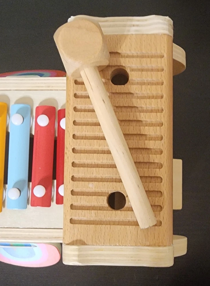 Manhattan Toy Wooden Musical Instrument Lili Llama Xylophone Rattle Learning Toy Preowned in Great Condition with Minimal Signs of Wear. Missing 1 of the 2 Hammers. Below Information from the Manufacturer: Get your jam on! This Llama is loaded with musical fun and activities: 4 spinners, 2 gears, 1 maraca tail, 5-bar xylophone, 1 set of notches/washboard for ratchet sound, 2 clacking saddle blankets and 2 mallets that store in Lili's head. The whole thing is cute enough to leave sitting out for all to see. Now a Toy of the Year Finalist! Named one of the Best Toys from Toy Fair 2020 by Good Housekeeping Institute. Among the Hottest Toys of 2020 that Kids Will Flip For. Measures 7.2D x 4.5H x 9W in. | 18.4D x 11.5H x 22.9W cm. All wood toys have non-toxic water-based finishes. This product meets or exceeds EN71 and CPSIA safety regulations.