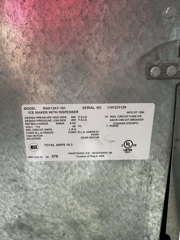 Manitowoc RNS 12At-161 Counter Unit. Nugget Ice Maker and Water Dispenser. Hands Free Dispensing. Works perfectly. Very good condition.