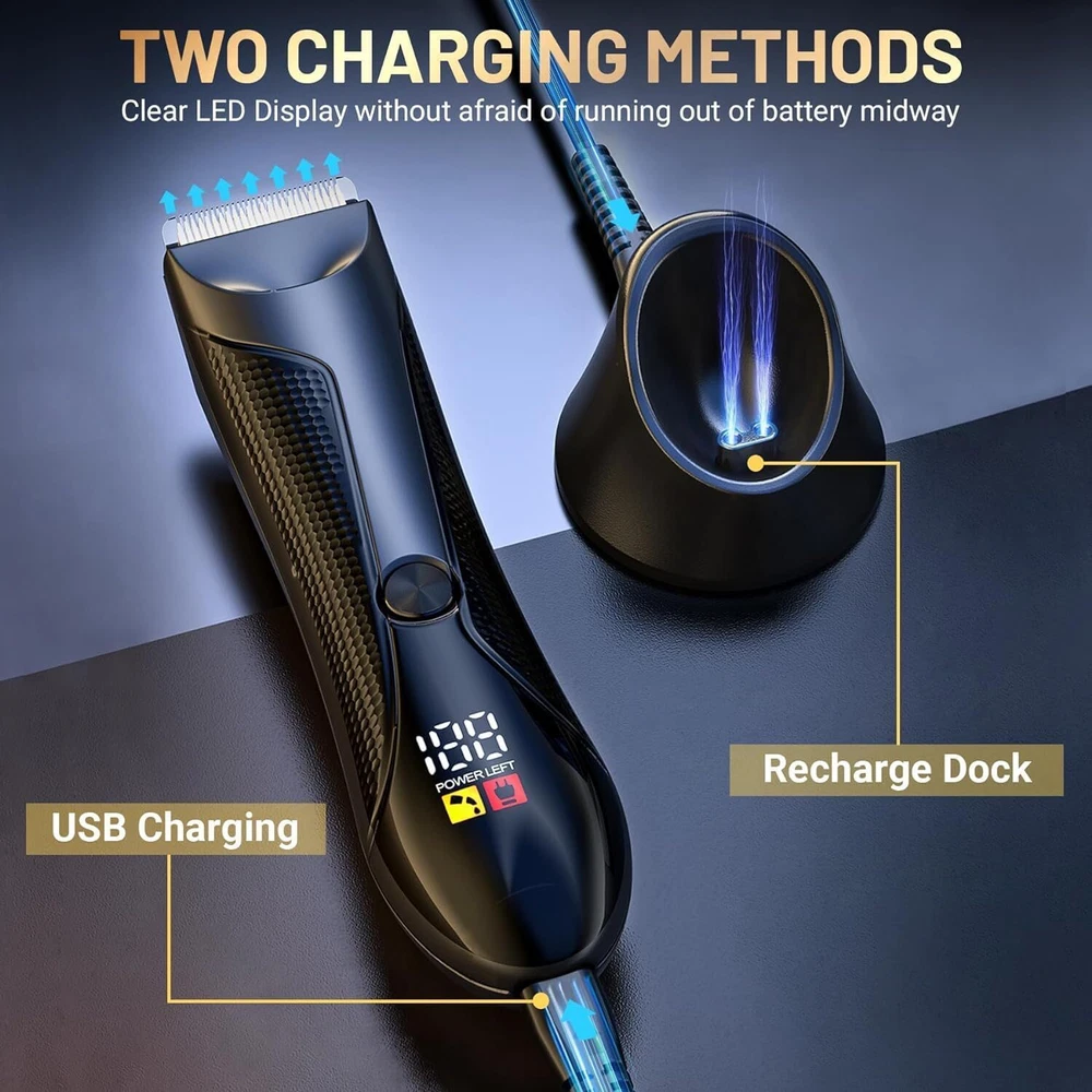 Manscape Groin Hair Trimmer for Men's Electric Ball Trimmer Wet/Dry Body Shaver Manscape Groin Body Hair Trimmer, Electric Ball Trimmer Pubic Trimmer Men Shaver Manscape Grin Hair Trimmer for Men Safe Ball Shaver Ceramic Blade Ball Trimmer EXCEPTIONAL PERFORMANCE: KIKIDO body hair trimmer features a low-sensitivity ceramic cutter head, meticulously designed to reduce skin sensitivity and discomfort while ensuring hair is effortlessly trimmed without pulling. Combined with a high-speed 7000 RPM motor and a meticulously engineered, quiet cutter head, each grooming session guarantees optimal comfort and satisfaction. PORTABILITY AND DURABILITY: Crafted with a compact, ergonomic design and a non-slip rubber handle, KIKIDO is the epitome of versatility, suitable for various settings including family use, business trips, and personal travel. Its IPX7 waterproof rating allows for seamless wet and dry grooming, ensuring easy maintenance and hygiene. Compact enough to fit into any suitcase or backpack, KIKIDO is your ultimate grooming companion on the go. EXTENDED BATTERY LIFE: With the convenience of dual charging methods, including a charging base and direct cable charging, KIKIDO offers uninterrupted grooming wherever you are. A mere 1.5 hours of charging provides an impressive 90 minutes of shaving time, ensuring reliability and efficiency in every use. PRECISION GROOMING: Equipped with an innovative LED lighting design, KIKIDO guarantees precision even in low-light conditions, ensuring every trim is immaculate. Its refined cutter head design, complete with an adjustable guide comb offering four trim lengths, caters to diverse grooming needs across various body parts with utmost precision and efficiency. THE PERFECT GIFT FOR DISCERNING MEN: Boasting an exquisite appearance and comprehensive functionality, KIKIDO is the ultimate choice for discerning individuals seeking the perfect gift. Whether for fathers, sons, brothers, husbands, or boyfriends, KIKIDO is a thoughtful gesture for birthdays, anniversaries, Father's Day, Christmas, and any other special occasion Previous page Next page ERGONOMIC BODY DESIGN STRONGER POWER BATTERY SAFE INTIMATE DESIGN All In One Professional Trimmer Previous page Next page
