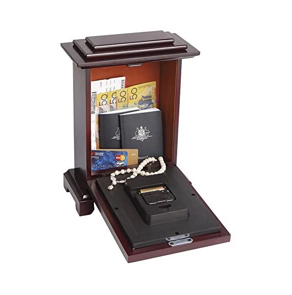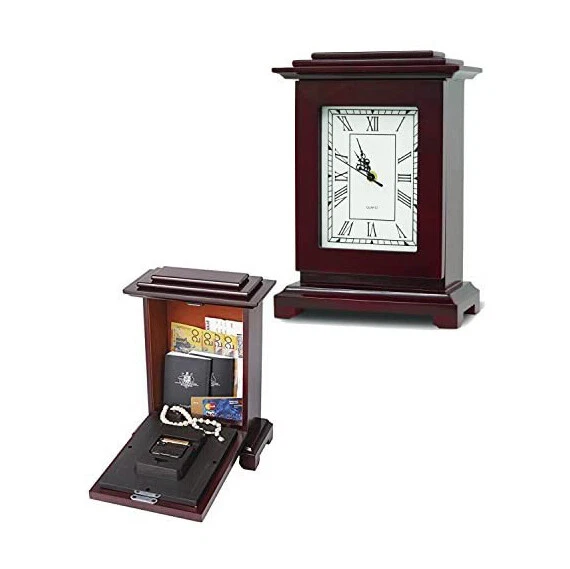 WELCOME TO OUR STORE Mantle Vintage Clock Safe Concealment Hidden Storage Secret Security Compartment ★★ FAST & FREE SHIPPING ★★ ★★100 % Money Back Guarantee ★★ Description: Fully functional and decorative rectangular clock modified to work as a diversion safe with a large secret stash compartment hidden behind the face of the clock that uses a hinge and magnetic clasp enclosure to open and close with ease The hidden storage space is great for hiding small valuables like keys, cash, jewelry, credit cards, etc. and also fits many types of handguns (It is felt lined to protect your belongings from damage) It would not look out of place on a mantel, shelf, table or any other common area a clock might be found The everyday time function of the clock only requires one (1) AA battery for power, which is included in the package Constructed of engineered wood with mahogany stain ★★ Thank you for shopping at our store ★★ cabinet safety locks cabinet safety lock gun cabinet with ammo safe On Jul-07-20 at 04:21:06 PDT, seller added the following information: