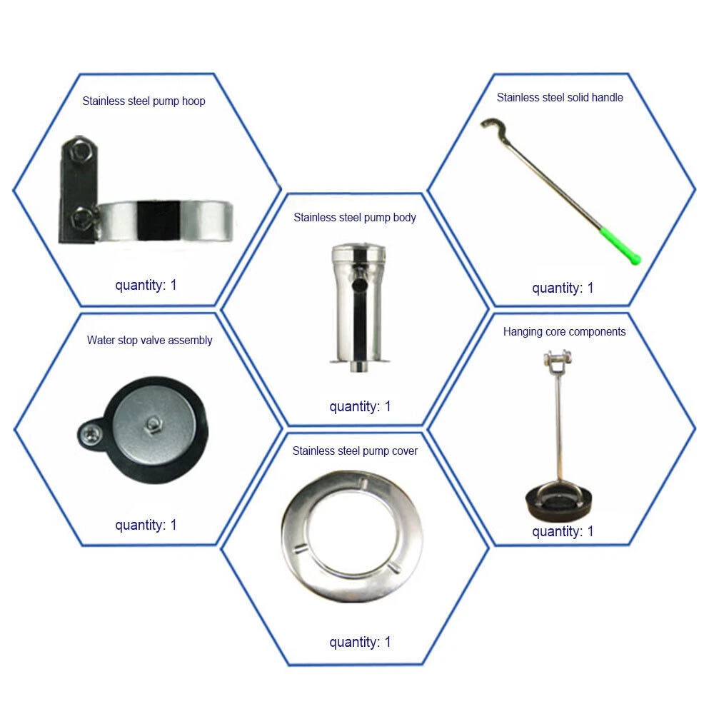 Specifications Pump Body: 255mm Base Diameter: 89mm Handle Length: 456mm Material: Stainless Steel Interface: 32mm outer diameter water pipe Suction range: 8m Features: Increase Weight: 1.435kg Material: pump body, lifting core, screws: 202 non-magnetic stainless steel cup, water-proof sheet: high-quality rubber Dimensions: Pump height: 25 cm, bottom diameter: 8. 8 cm, Handle length: 45.6 cm, handle diameter: 1. 2 cm Hanging water component: 18.5 cm, pump body thickness: 0. 8 mm Outlet length: 5.7 cm Package Included: Pump Body x1 Hanging Core x1 Screw (202 non-magnetic stainless steel) x3 Rubber Pump Cup x10 Rubber Water-proof Tablets x10 Hose Connector x1 PVC Connector x1 Raw Material Belt x1 Hand Pump Suction Pump Stainless Steel Home Shallow Well Manual Water Jet Pump Product Description This pump is an improved version of stainless steel. Good airtightness prevents the water from deteriorating when drawing water. Although the new pump is small, because of its excellent design, the water output can far exceed the old cast iron pump. Its pumping height is up to 10 meters. If you have pumping needs, you shall not miss this product. Key Features Latest Technology The pump cover of the old pump is an external type, which is not tight enough after being covered, and it is easy to leak. The pump cover of the new pump is internal, beautiful in appearance, reasonable in design, and tighter after being covered. Exquisite Workmanship This pump has been reinforced with welding. For example, the connection of the pump, the handle, and even the edge of the pump foot has been welded many times. Superior Performance The whole body of this pump is made of stainless steel and will not rust after many years of use. With good pumping capacity, it can pump water from wells up to ten meters high. You do not need to worry about its capabilities. Value for Money To make this pump more value for money, we will give you 10 extra pump cups and 10 water-proof tablets. Do not worry about wear and tear, and then discard this product. You just need to replace the parts to make it a new one. It is not a disposable consumable! Specifications Pump Body: 255mm Base Diameter: 89mm Handle Length: 456mm Material: Stainless Steel Interface: 32mm outer diameter water pipe Suction range: 8m Features: Increase Weight: 1.435kg Material: pump body, lifting core, screws: 202 non-magnetic stainless steel cup, water-proof sheet: high-quality rubber Dimensions: Pump height: 25 cm, bottom diameter: 8. 8 cm, Handle length: 45.6 cm, handle diameter: 1. 2 cm Hanging water component: 18.5 cm, pump body thickness: 0. 8 mm Outlet length: 5.7 cm Features: 1、The inner pump cover is more beautiful, the design is more reasonable, and the cover is tighter 2、Strong welding Package Included: Pump Body x1 Hanging Core x1 Screw (202 non-magnetic stainless steel) x3 Rubber Pump Cup x10 Rubber Water-proof Tablets x10 Hose Connector x1 PVC Connector x1 Raw Material Belt x1 Payment Delivery details Terms of sales About us Contact us Payment We accept ebay payment 。 Fees such as import duties, taxes are not included in the item price or shipping costs. These charges are the buyer's responsibility. Delivery details Shipping: 2-9 working days to: USA Terms of sales We maintain high standards of excellence and strive for hundred percent customer satisfaction. Feedback is very important to us. We hope that you contact us immediately before you give neutral or negative feedback, so that we can address your concerns. It is impossible to address issues if we do not know about them! About us Your satis faction is our ultimate goal. We work hard to earn your trust and future business. Our certified technicians have tested each item before shipping. The unit comes with 1 year limited warranty on all manufacturing defects. a) If you receive a defective item, you may return it or ask for a discount. Please contact us within 14 days after you receive the package. b) What you returned must be intact and in its original packaging as re? u. Customer is responsible for shipping costs of the returned item. c) We will cover the cost of shipping back t with the shipping rate indicated in the registration page. We will send you a new unit or refund the full payment you paid. Thank you. Contact us Business Hour Business Hour: Monday To Friday: 8:30 AM to 5:00 PM (Beijing China time) Due to time zones, our reply to your questions may not be immediately. But within above working time, we will reply your email within 24 hours. If it's non-workdays, please kindly be patient and wait till Monday. Please contact us with ebay message. Please feel free to contact us if you have any questions. Monday To Friday: 8:30 AM to 5:00 PM (Beijing China time) Due to time zones, our reply to your questions may not be immediately. But within above working time, we will reply your email within 24 hours. If it's non-workdays, please kindly be patient and wait till Monday. Please contact us with ebay message. Please feel free to contact us if you have any questions. Brand Unbranded Country/Region of Manufacture Unknown 1.Feature High-quality Feature 1 Durable Material,Good quality Tips If you have any questions, please contact us! Surface Finish 1 Made of high quality material Shipping Note Cannot ship to Puerto Rico & Hawaii Interface 1" NPT outer diameter water pipe Note Top cover is not included Type Pump Color Silver Material stainless steel Pump height 25 cm Pump bottom diameter 8. 8 cm Outlet length 5.7CM Weight 1.435kg Handle length 45.6 cm Pump Body 255mm Base Diameter 89mm Suction range 8m UPC Does not apply