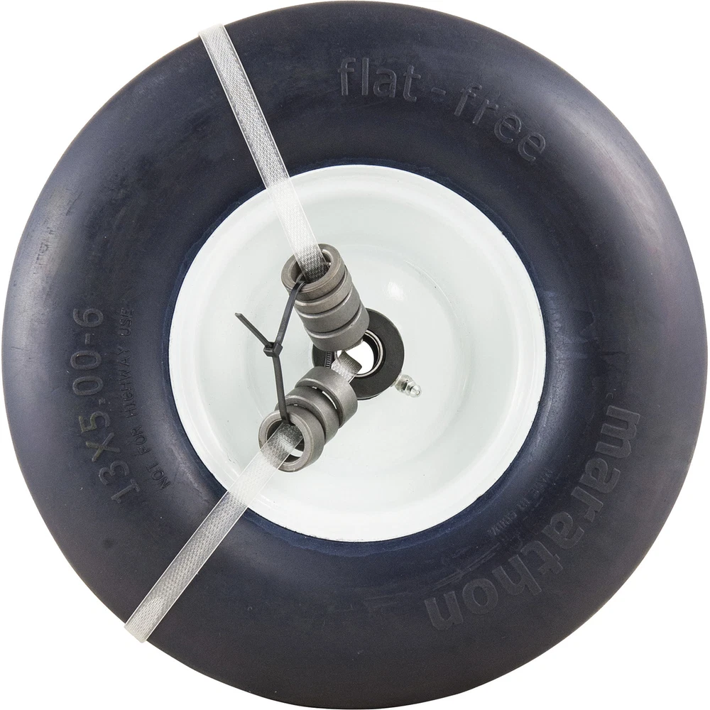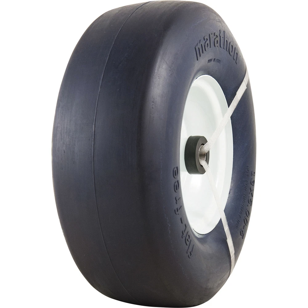 Save both time and money with reliable, bulletproof Marathon solid flat-free tires. Flat-free tires keep your equipment rolling over the toughest conditions any jobsite can throw at you, eliminating costly and inconvenient flat tires. These flat-free tires are nonmarking and have the bounce and feel of pneumatic tires without ever getting flat. Load handling characteristics are similar to air-filled tires, except now troublesome flat tires are a thing of the past.This is the perfect replacement tire for lawn mowers -- performs like an air tire with NO FLATS! Lightweight, solid flat-free tire is mounted onto a 6in. steel rim, with 3 1/4in. hub with spacers to create 3 3/4in., 5 11/16in. and 5 29/32in. hubs, 3/4in. bushings and grease fitting. Marathon Tires Flat-Free Lawn Mower Tire, 3/4in. Bore, 13 x 5.00-6in. Northern Tool Item# 50793 Item Weight: 8.0000 lb(s) Manufacturer: Marathon Tires MPN: Warranty: . Product Summary: Save both time and money with reliable, bulletproof Marathon solid flat-free tires. Flat-free tires keep your equipment rolling over the toughest conditions any jobsite can throw at you, eliminating costly and inconvenient flat tires. These flat-free tires are nonmarking and have the bounce and feel of pneumatic tires without ever getting flat. Load handling characteristics are similar to air-filled tires, except now troublesome flat tires are a thing of the past. This is the perfect replacement tire for lawn mowers -- performs like an air tire with NO FLATS! Lightweight, solid flat-free tire is mounted onto a 6in. steel rim, with 3 1/4in. hub with spacers to create 3 3/4in., 5 11/16in. and 5 29/32in. hubs, 3/4in. bushings and grease fitting. Features + Benefits Payment Instructions You can pay us securely through eBay. All orders will contain an invoice/receipt. IMPORTANT: We will not honor requests to remove invoices or receipts from packages. No exceptions ON U.S. PURCHASES, Northern currently collects sales tax on purchases shipped to all states except: Alaska, Delaware, Montana, New Hampshire, Oregon Shipping Information This product will be shipped by Parcel. Parcel Shipping: Ground Shipped items must be sent to a physical address and cannot be sent to PO boxes. If a PO box address is submitted without a physical address it may delay your order. We cannot ship to APO/FPO boxes. Please note that we do not ship items on weekends or holidays. More information on shipping and handling times can be found on our Store Policies Page . Customer Care We want you to be satisfied with your purchase; please notify us by email if you have any concerns. Before you send an email message, please check our Help Section . We may already have an answer to your question! We are available to answer your email questions Monday through Friday from 8am - 3pm CST, excluding holidays. If your email is sent on a weekend, holiday or after business hours, we will respond to you on the following business day. Returns may be accepted on most items within 30 days of receipt of the item. All returns require authorization from us. Some returns are charged a 15% restocking fee. Please click the Shipping and Payments tab on this item for specific return information and full details. About Our Products Product Warranty: Warranty information and contact details can be found on our Store Policies Page. We are working hard to ensure that the information provided on the eBay product advertisements is accurate and up-to-date. We reserve the right to correct ad errors and/or omissions. Pricing and availability is subject to change without notice. No