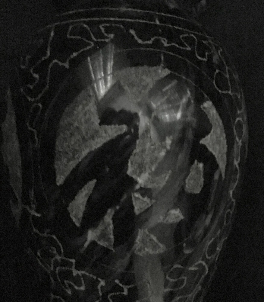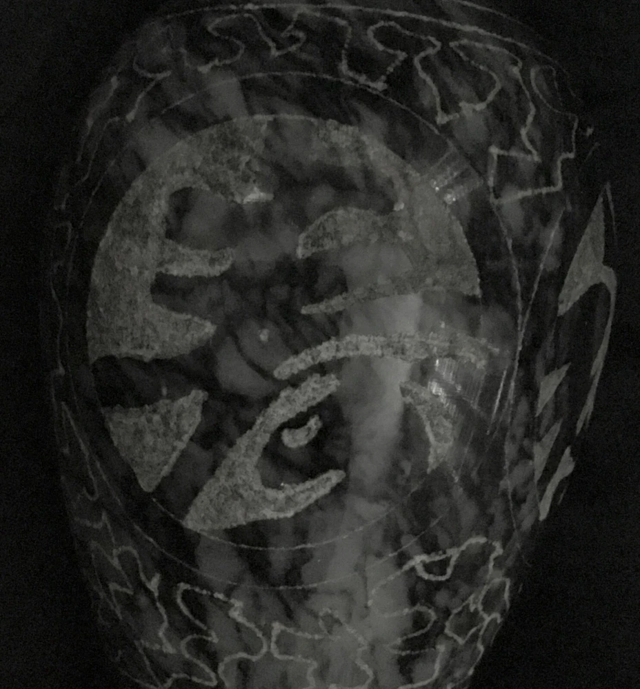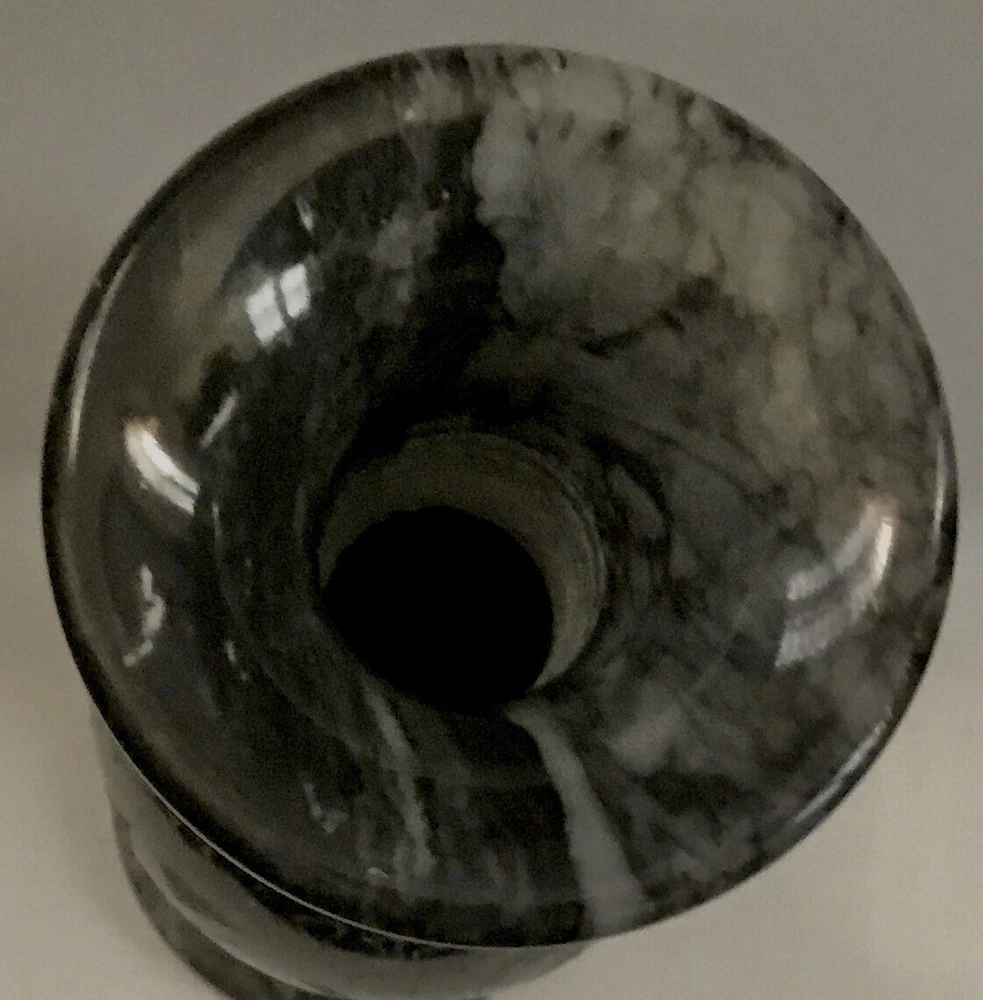 Black and gray marble vase with etched design. Vintage. Size 8” x 3” diameter