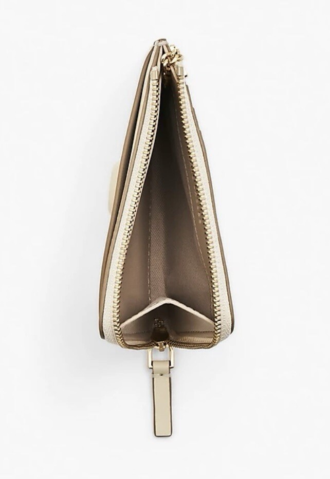 $ 30.1COACH Corner Zip Wristlet Signature Khaki Brown Wallet Woman BRAND NEW