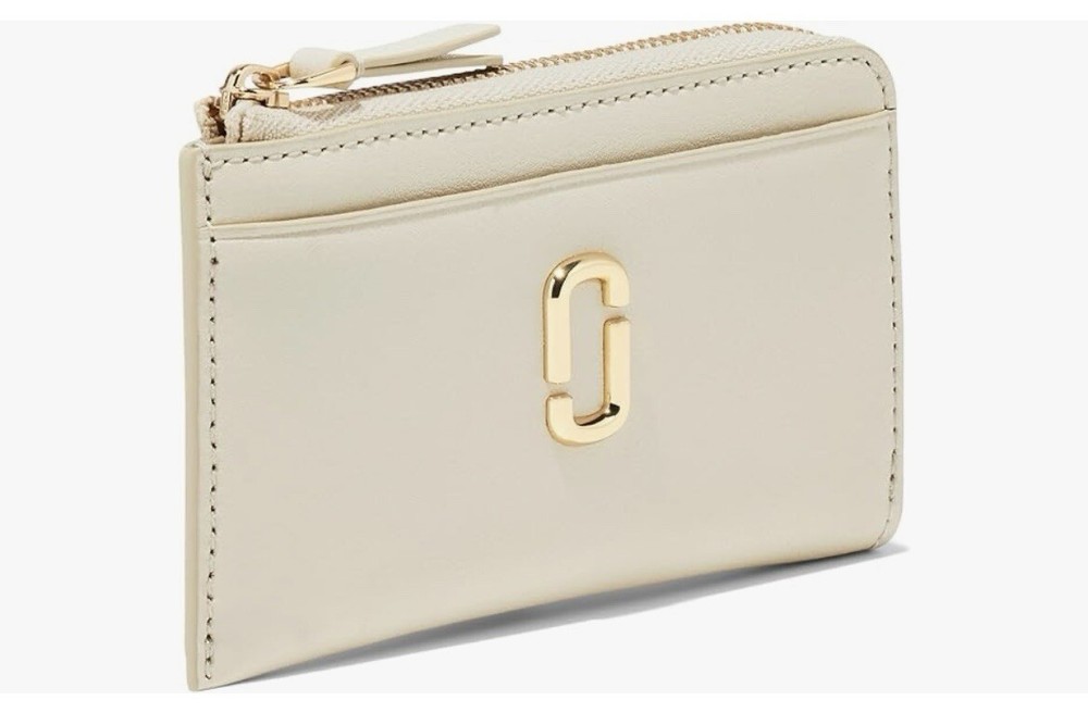 Description Marc Jacobs Wallets. SKU: 2S3SMP004S01123. Barcode: 196611040914. Color: Cloud White. Size: 5in L x 1in D x 3in H. Marc Jacobs The J Marc Leather Zip Wallet. This wallet, crafted from smooth leather, features a secure top zip closure, four card slots, two slip pockets, an interior coin pouch, and a removable dogclip, all lined with faille. 100% Leather.