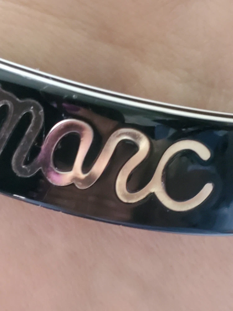 This elegant Marc Jacobs bracelet is a perfect accessory for any occasion. Its unique design features a round bangle with a slide closure and a caprice chain type. The bracelet is made of high-quality bakelite material and is nickel-free, making it suitable for people with sensitive skin. The vintage-inspired bracelet has a timeless appeal, with a classic charm type and a bar setting style. It is customizable, with the option to personalize instructions. The bracelet comes with a seller warranty and is signed by the designer. A must-have for any fashion jewelry collection.